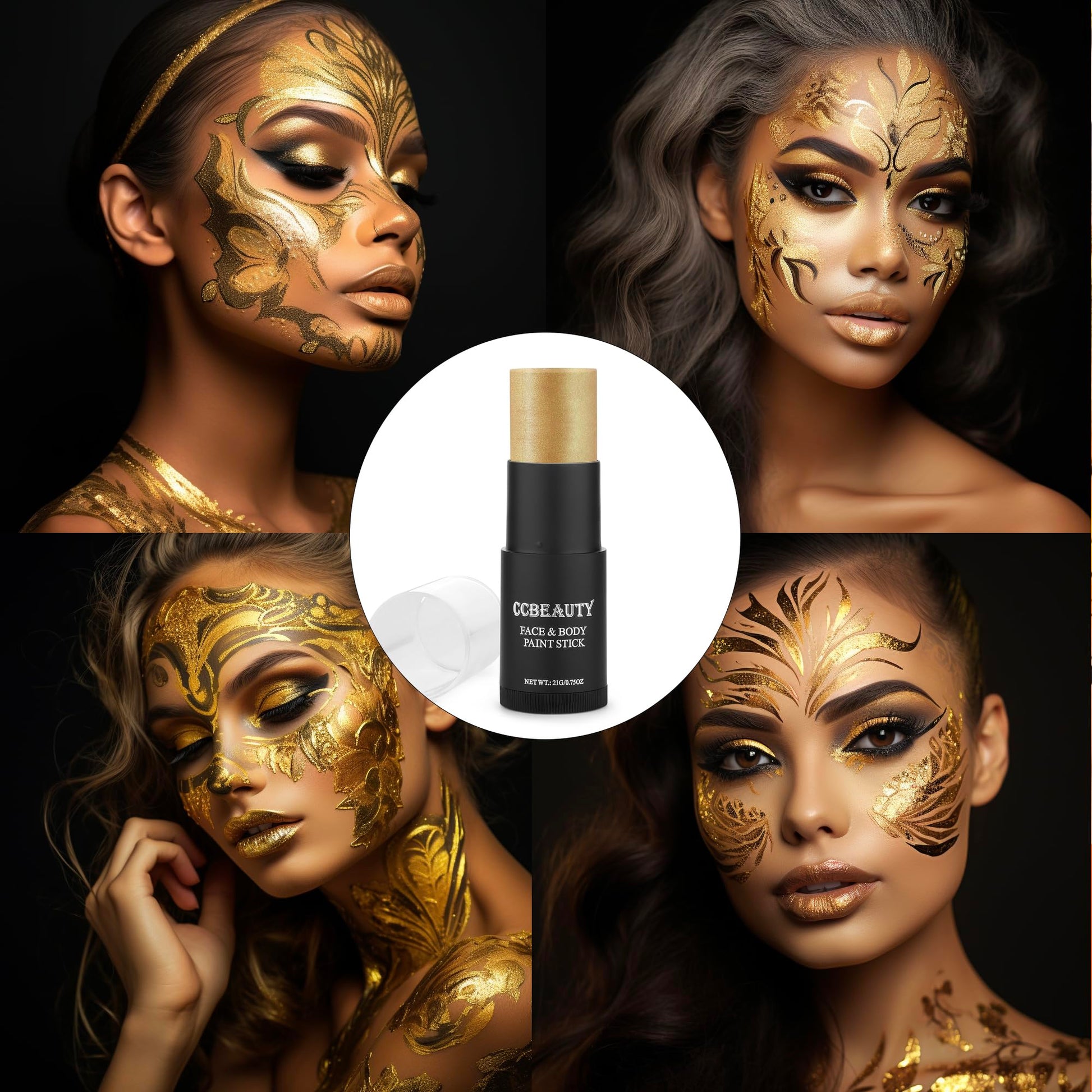 - 💗PRO METALLIC GOLD FACE BODY PAINT - CCBeauty CreamBlendable face and body paint sticks are manufactured using cosmetic grade ingredients,infused with Vitamin E and Aloe Vera. Provides high pigments to deliver you total full coverage with velvety consistency and intense colors payoff that will last you all day. Buildable, blendable cream formula with extreme long wear. Not streaky, looks almost like skin when wearing it.