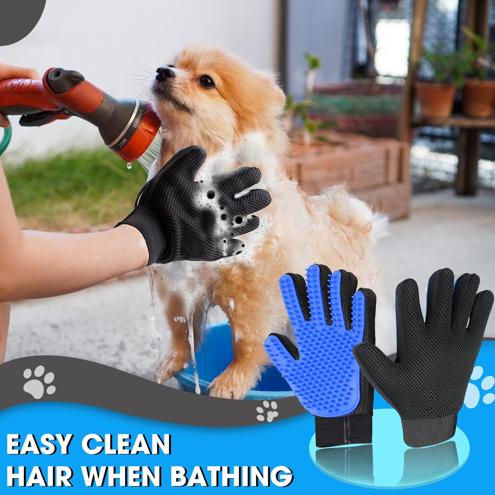 - HAIR REMOVER: Pet Grooming Gloves Perfect for Long, Short and Curly Haired Dogs, Cats, Horses, and Other Pets, Grooming The Hair Quickly, Gently and Effectively; The Shedding Hair Sticks to The Glove, Making It Easy to Peel and Throw Hair Away