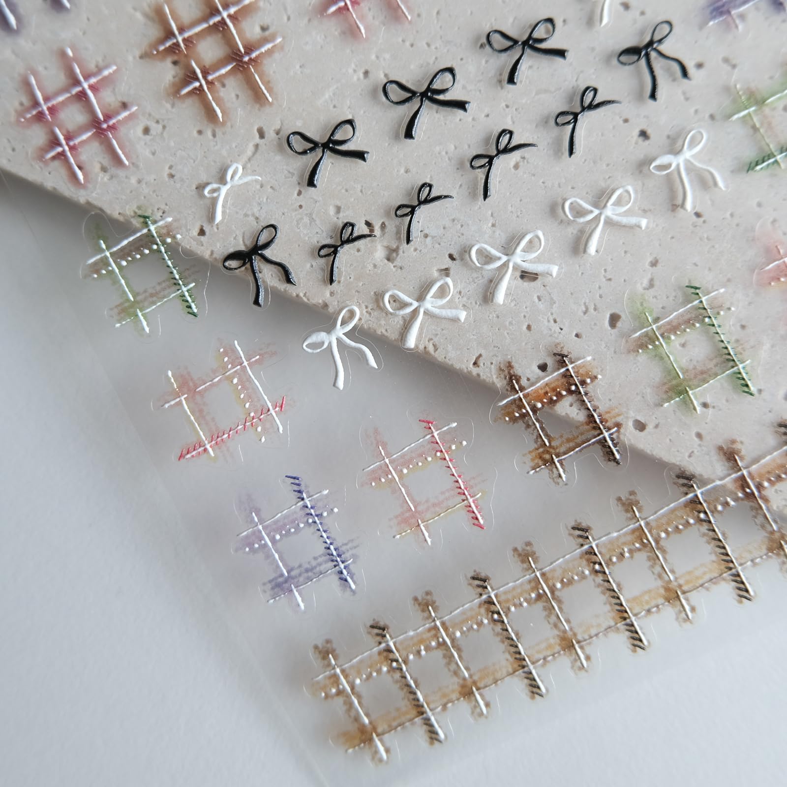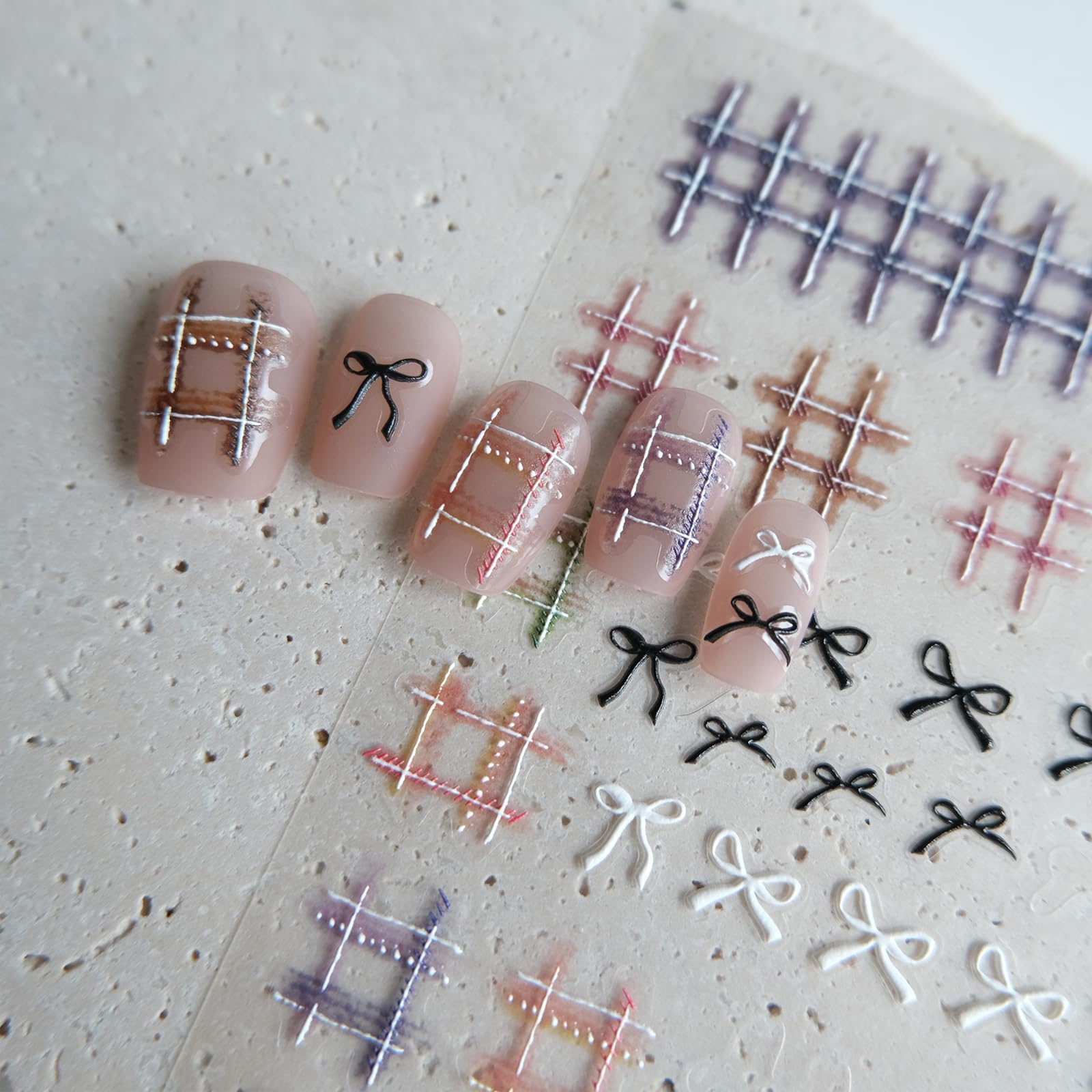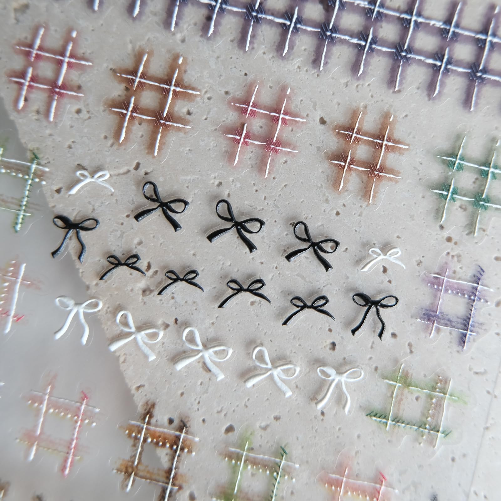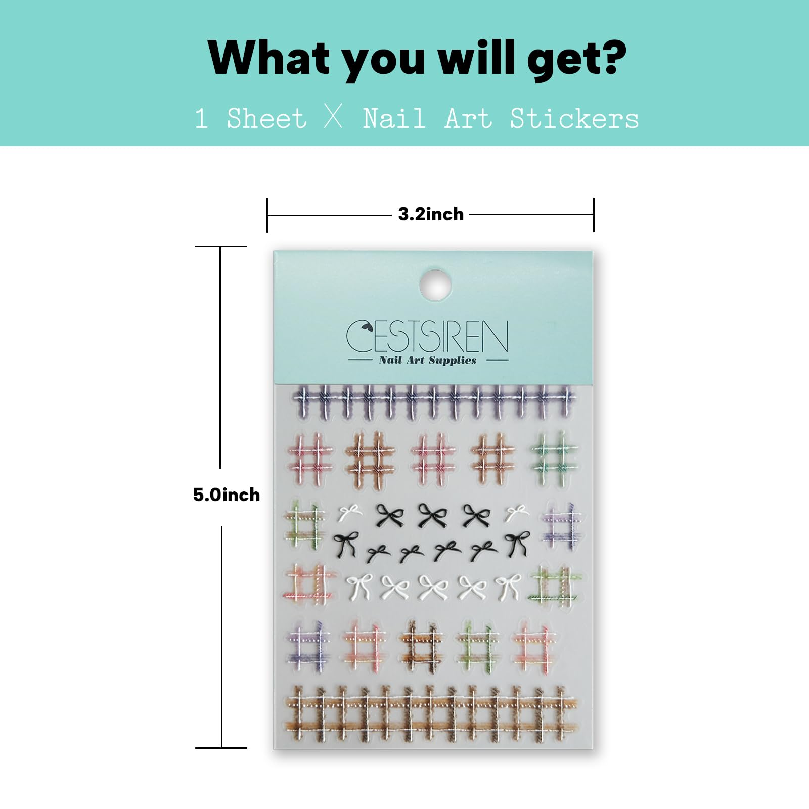 CESTSIREN Woolen Grid Bow Nail Art Stickers, Embossed Nail Decals,Elegant Cute Nail Art Design, Pearl, Self-Adhesive, Nail Accessories for Women, Nail Art Supplies