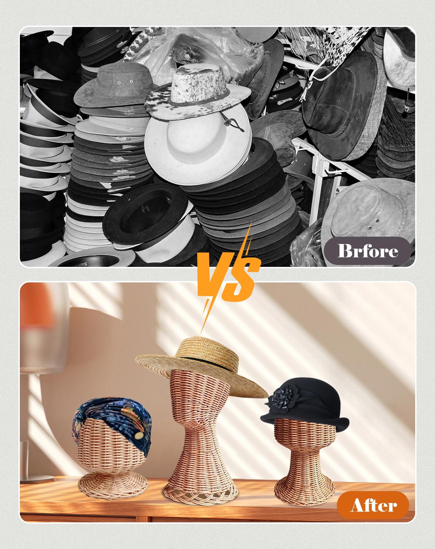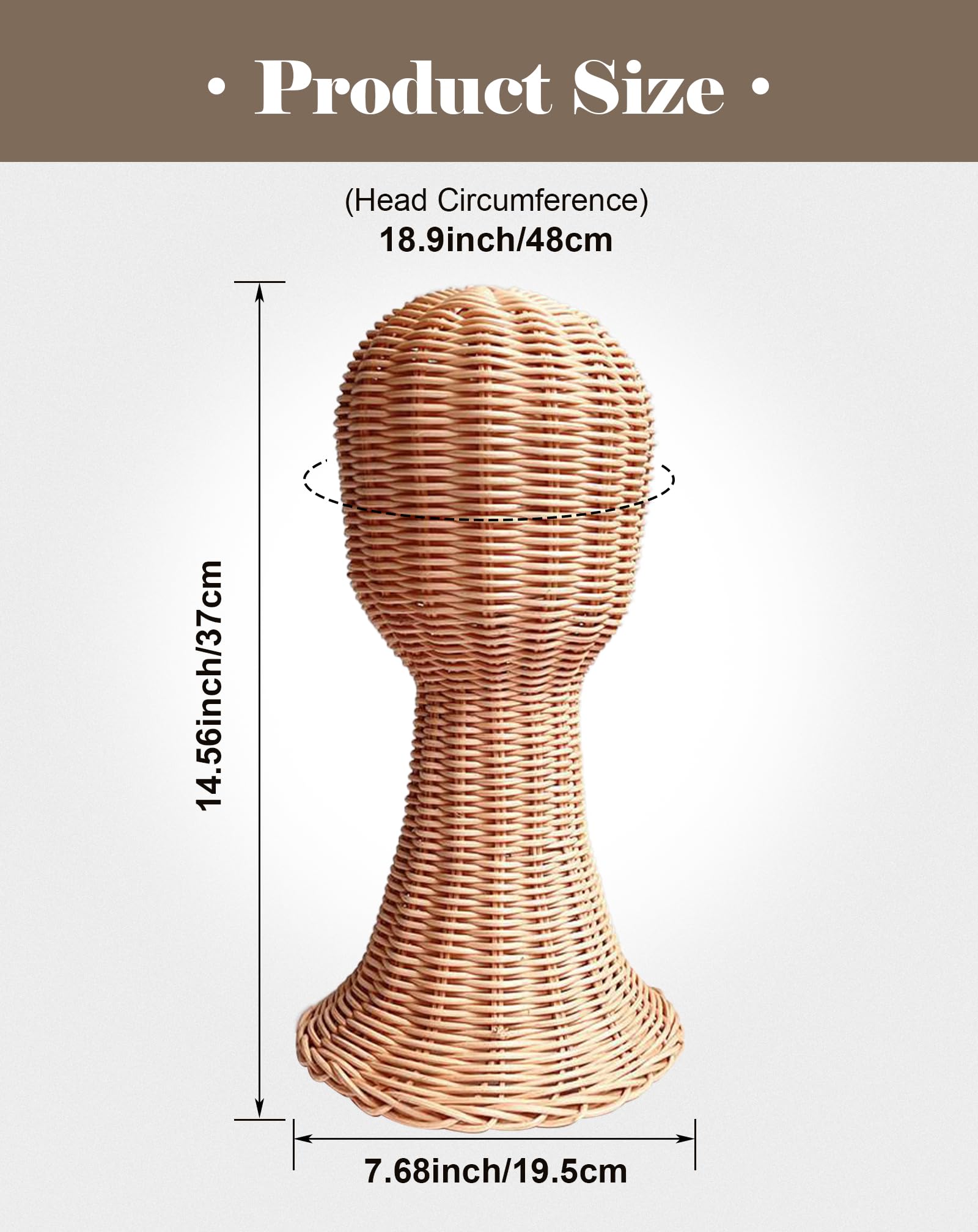- 20 Inch Circumference:Handcrafted with care, this Rattan Mannequin Head Stand boasts a circumference of 20.47 inches/52cm, perfect for showcasing hats, caps, and wigs