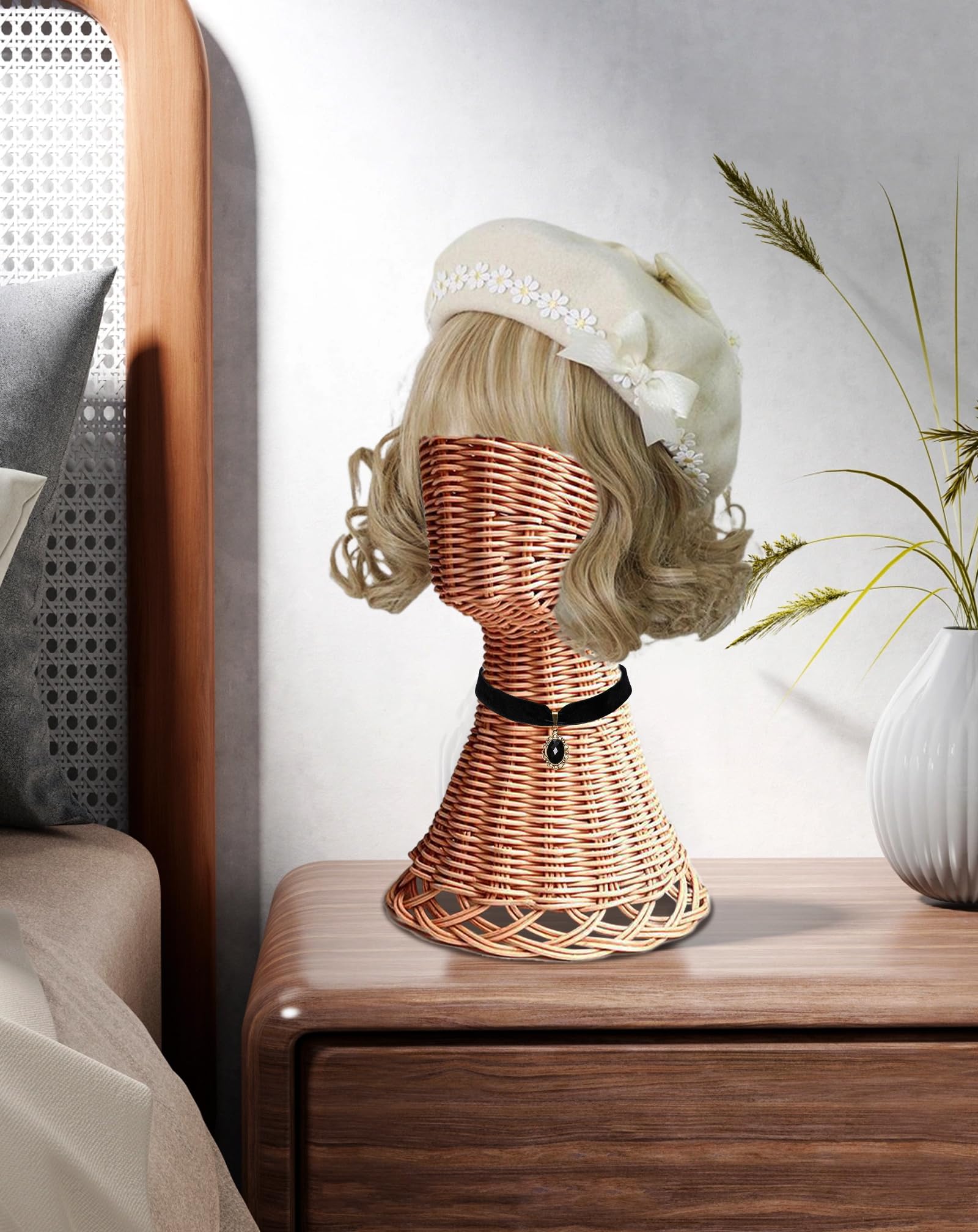 - Rattan Mannequin Head:Enhance your home or salon with the rustic charm of this mannequin head stand woven with real rattan. Its handmade wicker construction exudes warmth, making it a versatile accessory for both practical and decorative purposes