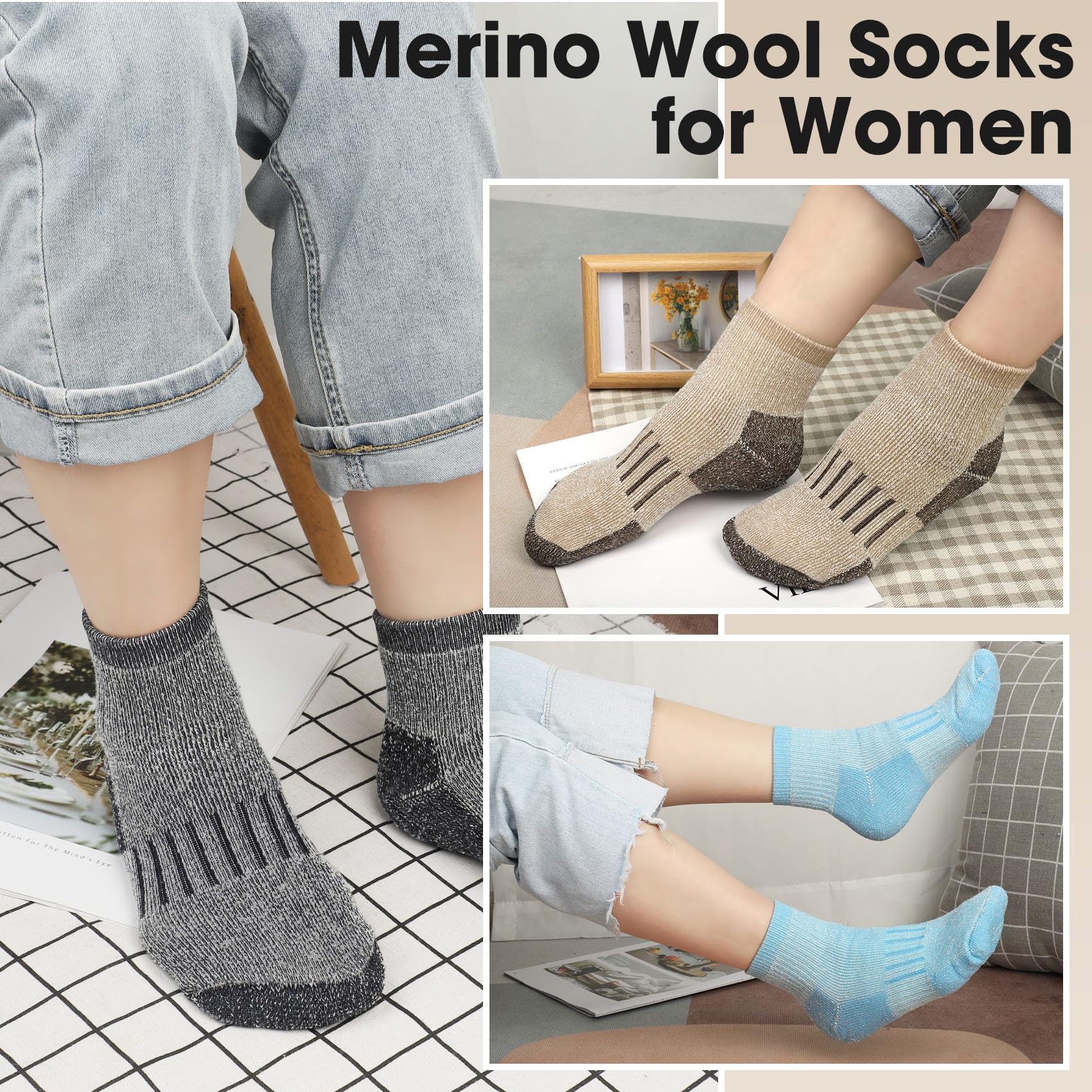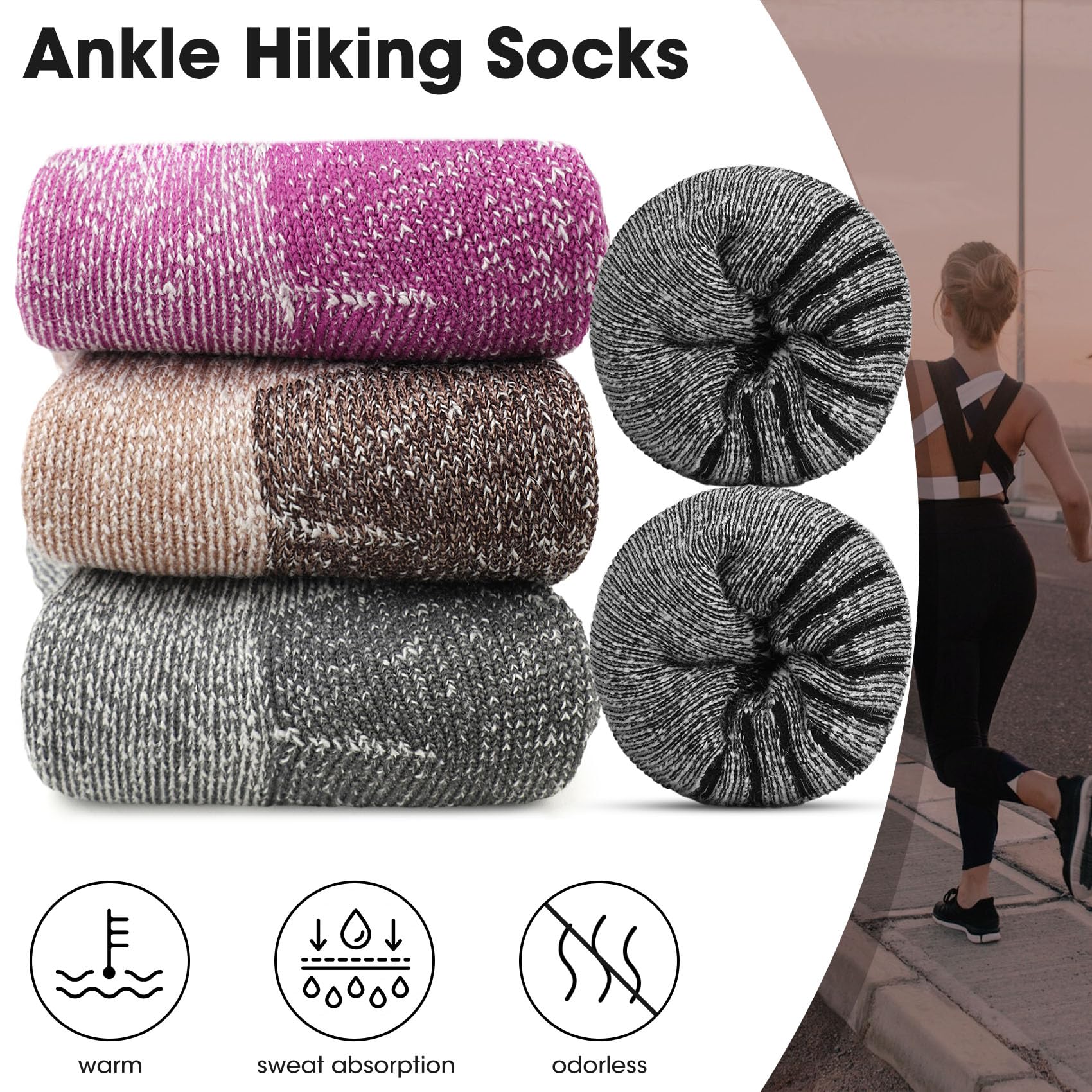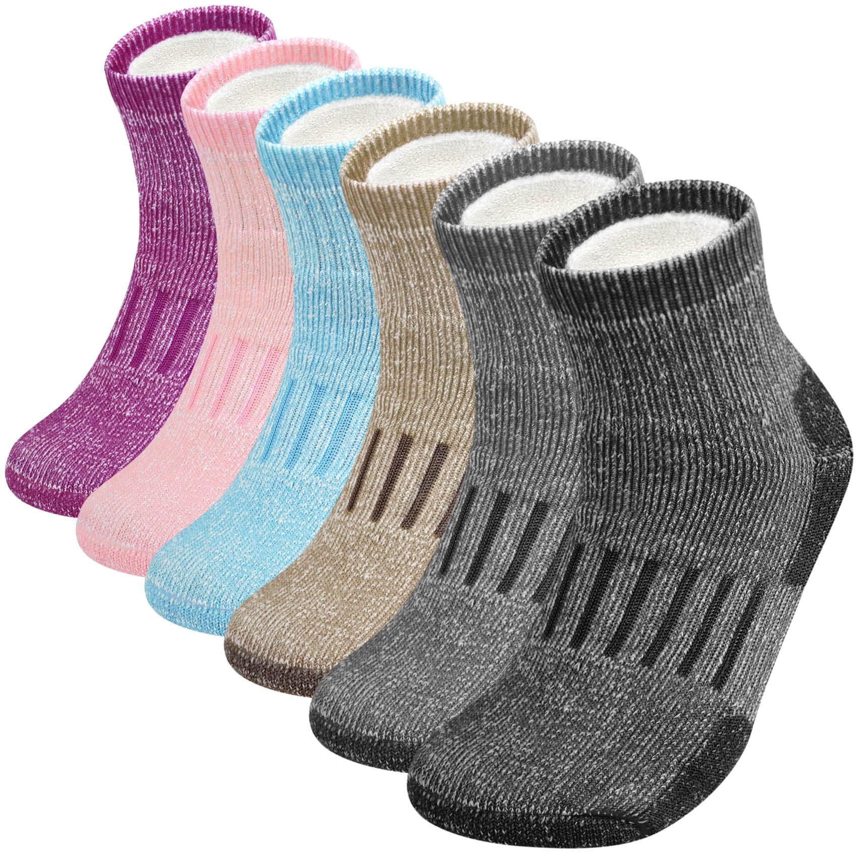 Chalier 6 Pairs Merino Wool Socks for Women, Compression Support Hiking Socks Ankle Running Thick Socks,A-Purple/Pink/Blue/Brown/Grey/Black