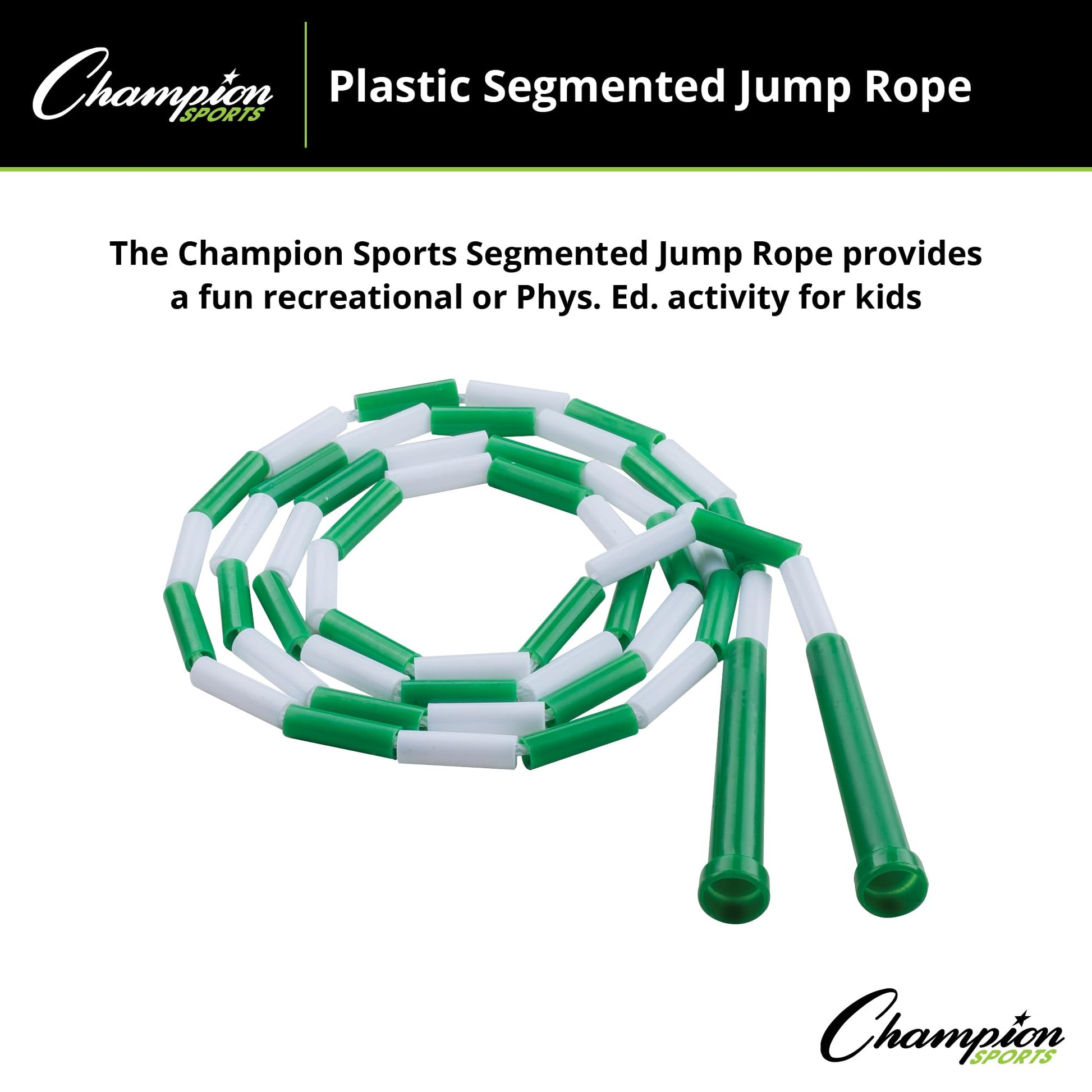 Champion Sports Classic Plastic Segmented Beaded Jump Ropes - Phys. Ed, Gym, Fitness and Recreational Use, 6'L, Green/White