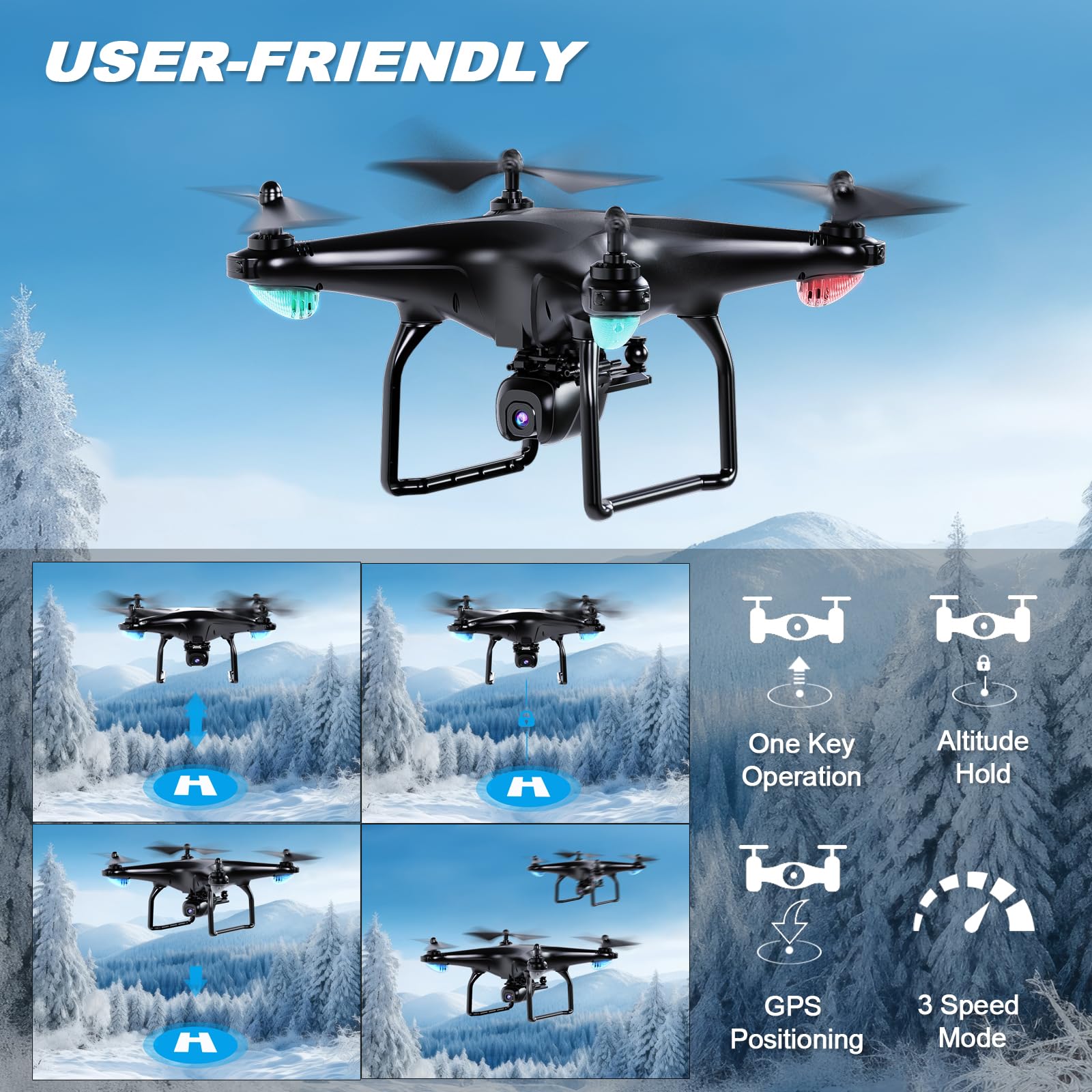 - Easy to Control: Features with basic functions, One Key Start, Altitude Hold, Optical Flow, 3 Speed Mode, Voice Control, make flight more easy and stable, make it suitable for beginners, newbies and pilots at any skill level.
