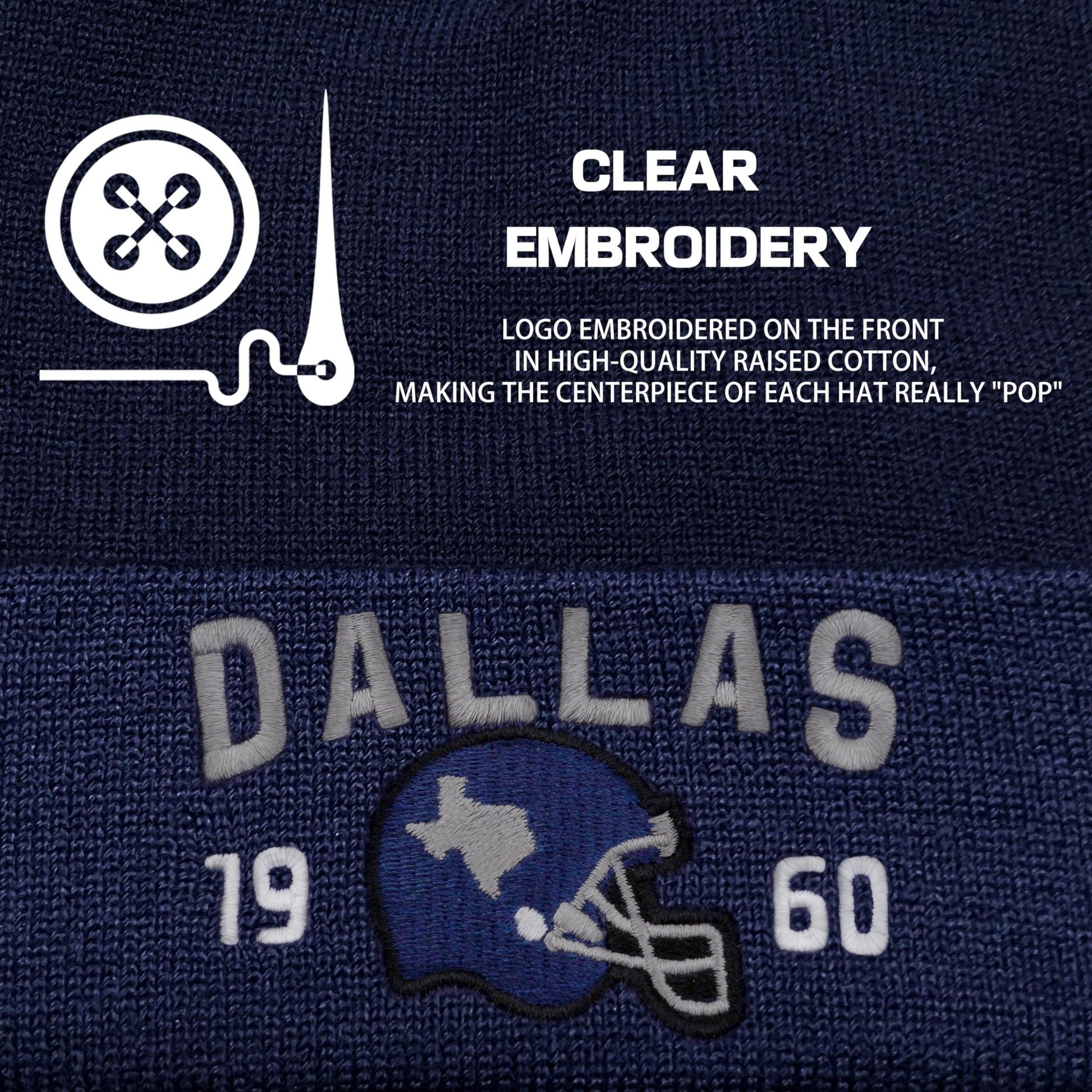 - Design:Men's and women's knitted beanie hats are embroidered with USA city names Dallas of team establishment time 1960 and look good.Fashionable and versatile,especially for team fans.