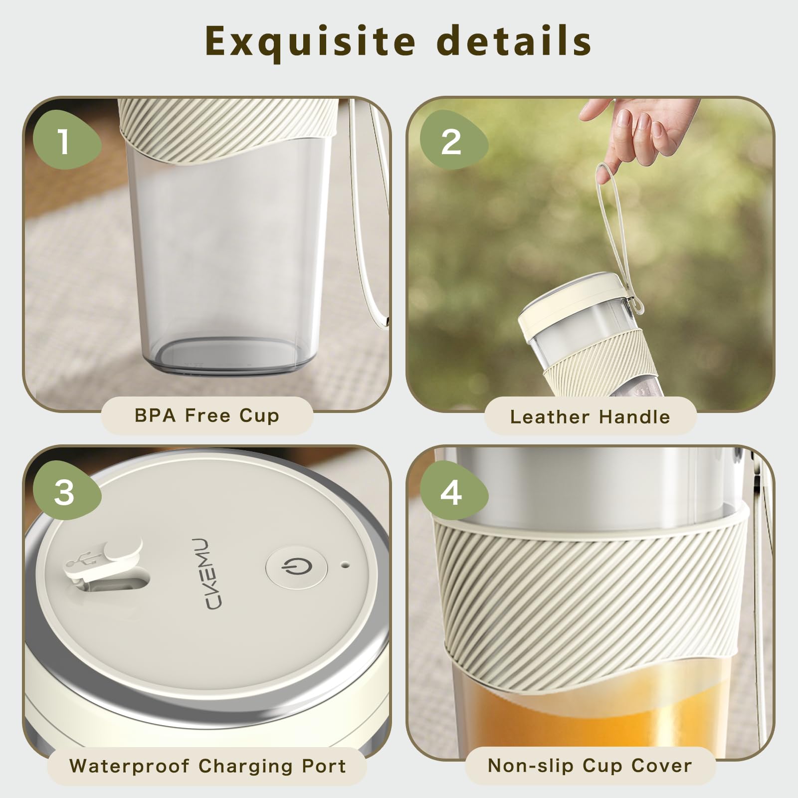 CKemu Portable Blender for Shakes and Smoothies, Rechargeable Cordless Blender Bottle, 3.5 oz, BPA Free, Dishwasher Safe, for Office, Gym, Home