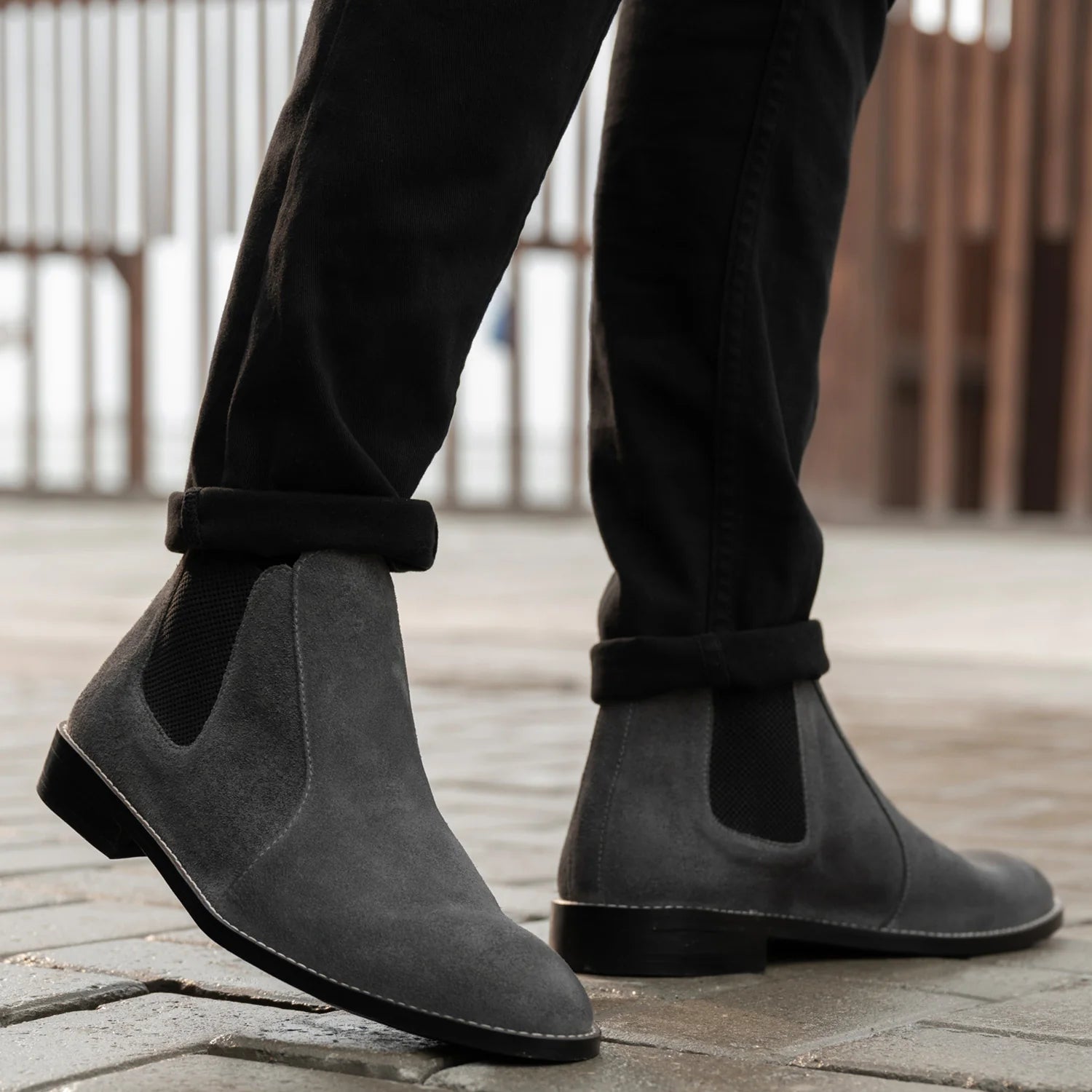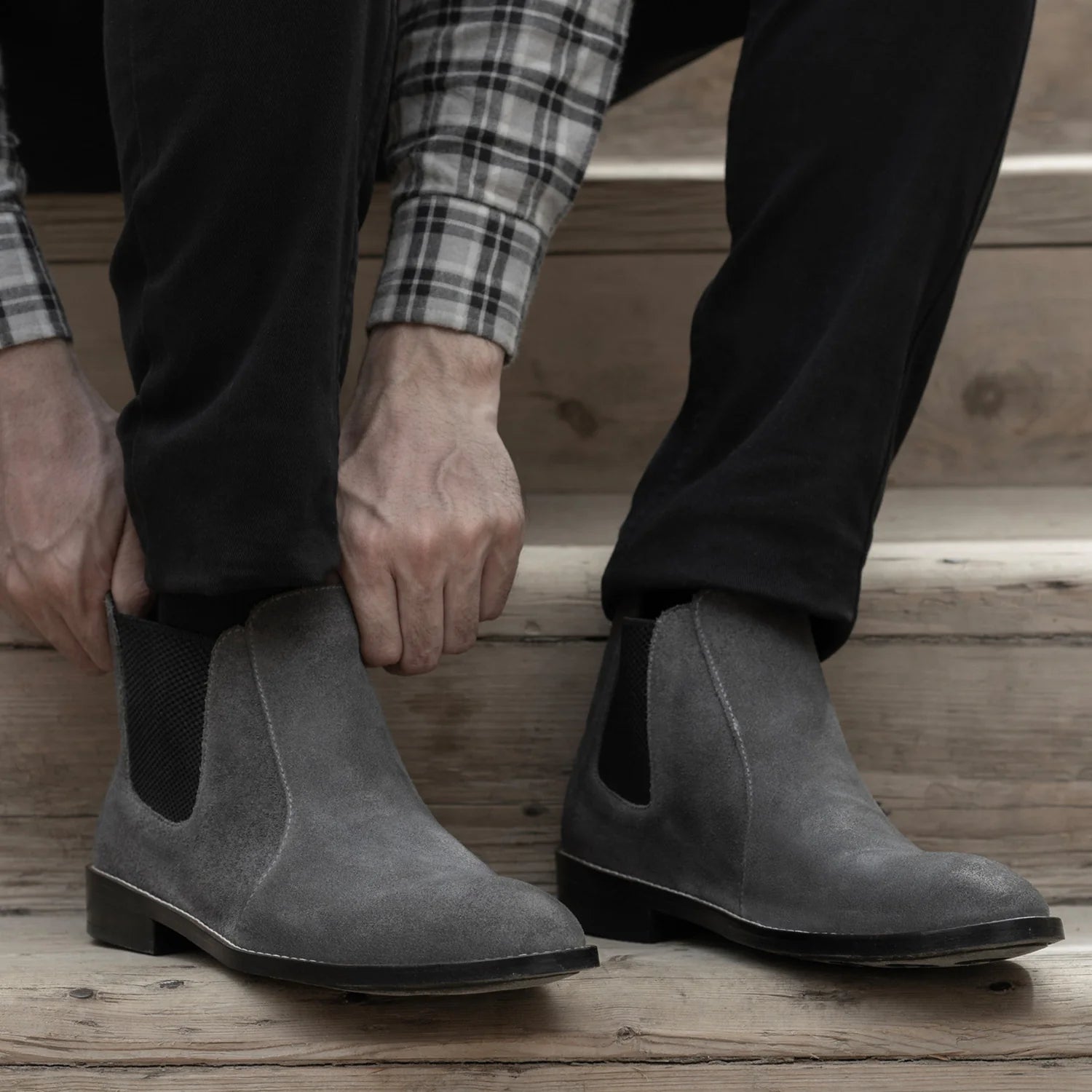 Clarkson Chelsea Grey Suede Leather Boots - StudGuard