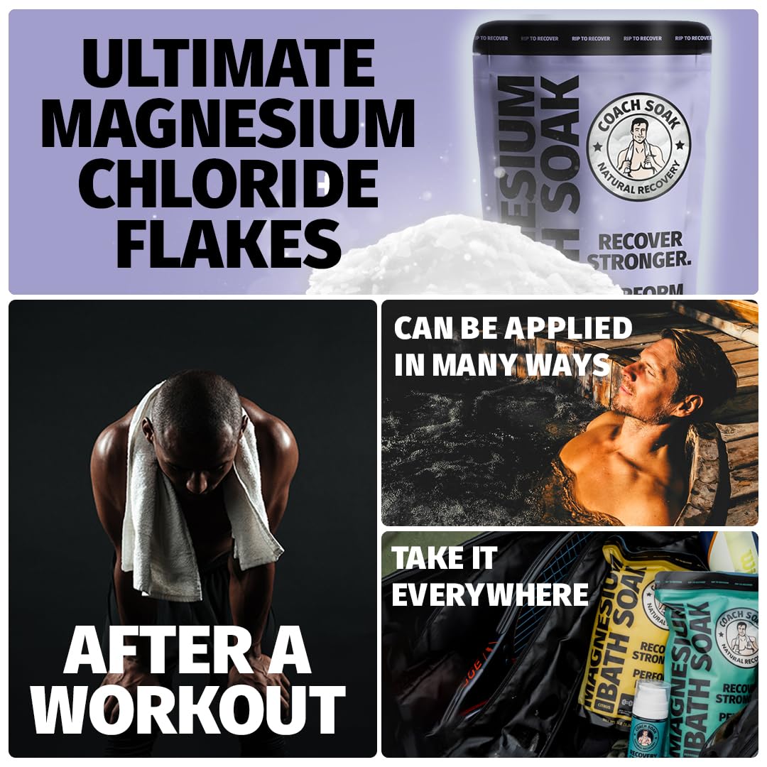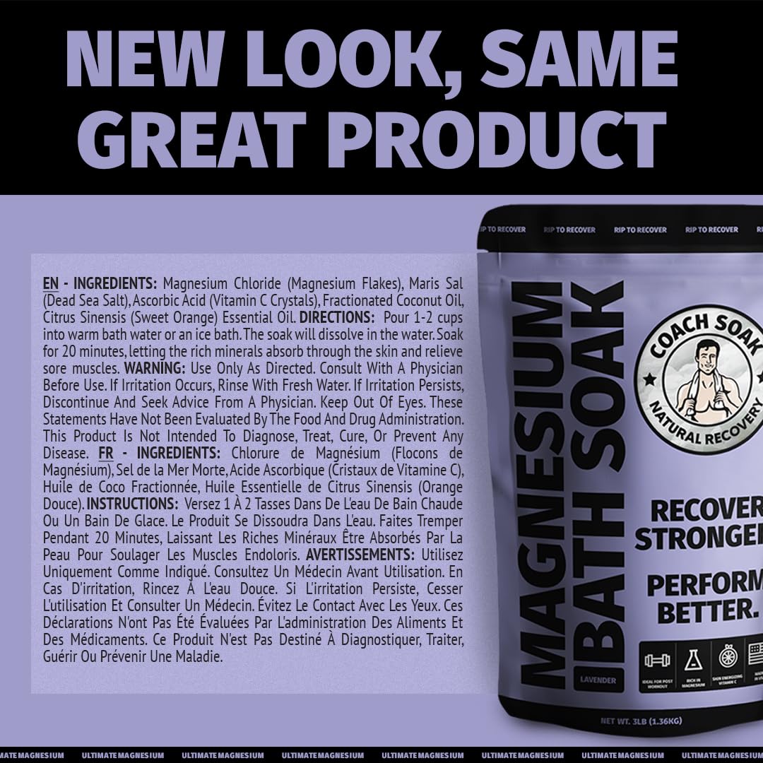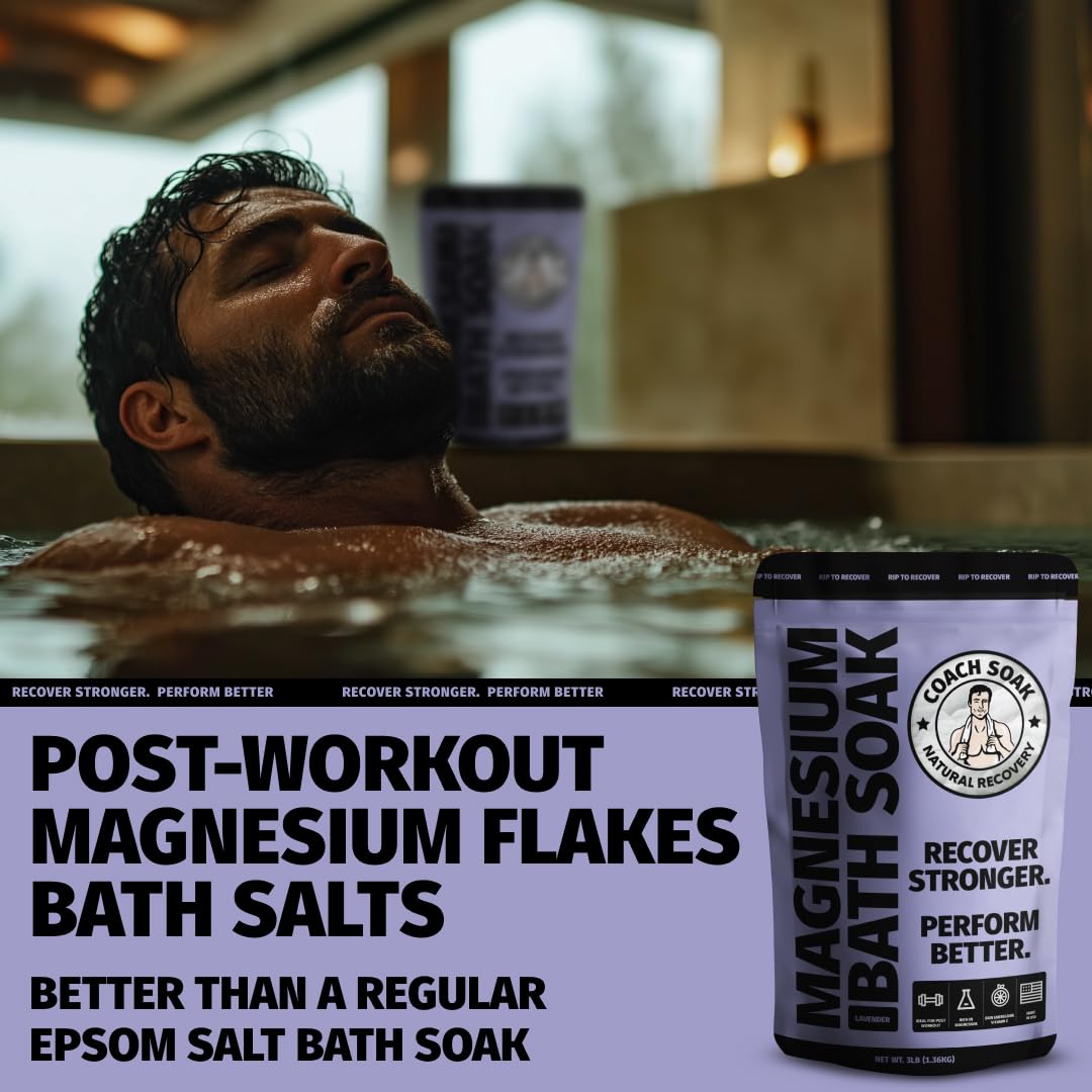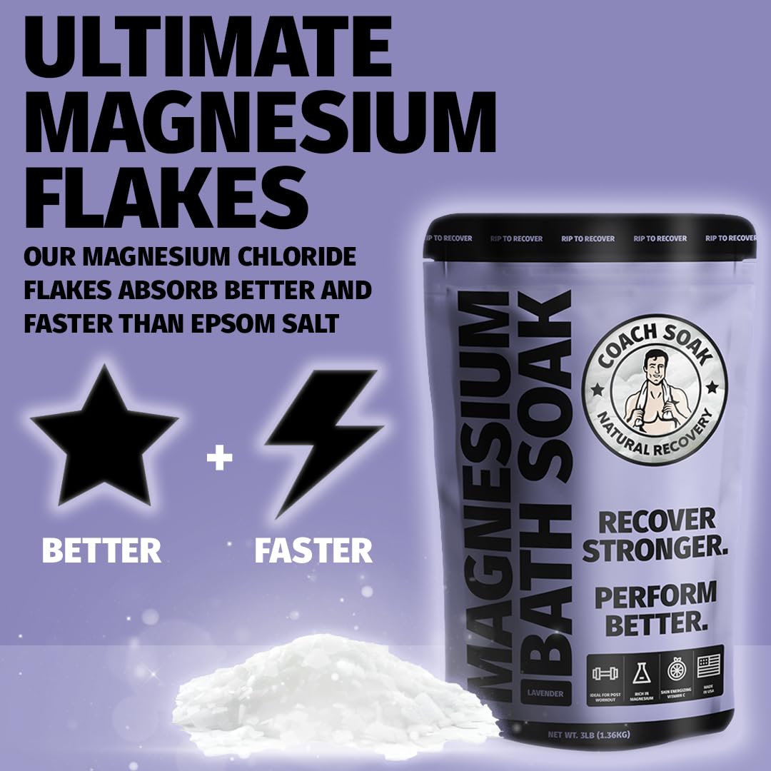 Coach Soak Recovery Bath Soak - Faster Absorption Than Epsom Salt for Pain - Rejuvenating Magnesium Flakes with 21 Minerals, Essential Oils & Bath Salts, 3lbs (Calming Lavender)