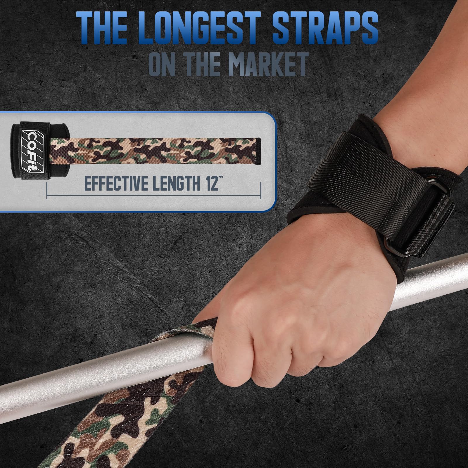 - Unmatched Grip Strength and Stability: Featuring an extra-long(effective length 12in), sturdy, and non-slip strap design, the COFIT Lifting Straps wrap securely around barbells, dumbbells, or machine handles. This creates a solid connection between your hands and the weight, significantly enhancing grip strength and allowing for improved control during lifts.
