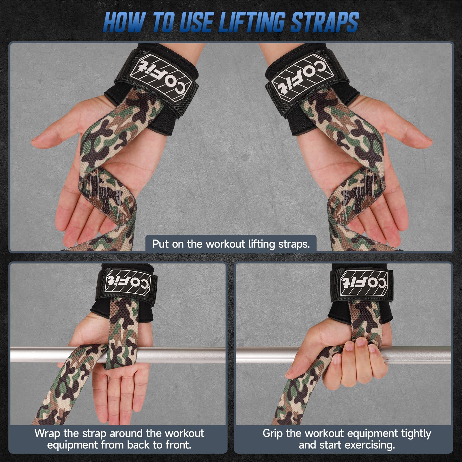 COFIT Workout Lifting Straps, Heavy Duty Weightlifting Wrist Straps with Extensive Cotton Padding Area, Enhanced Grip for Deadlifts, Powerlifting, Pull-Ups, Strength Training - Camouflage Green