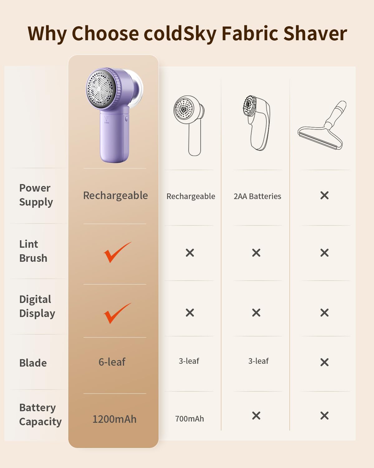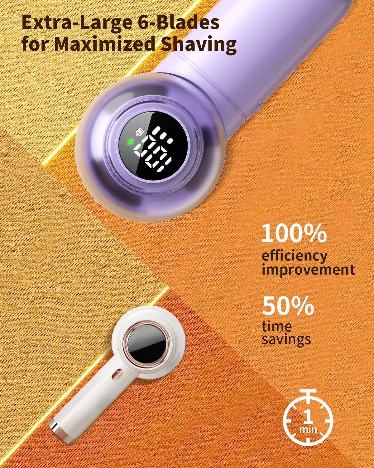 coldSky Fabric Shaver, š® š¶š» š Lint Remover with Brush, 1200mAh Sweater Shaver with Digital Display,3 Speeds Lint Shaver, 6-Leaf Blades Lint Remover for Clothes, Sofa, Bedding,Purple