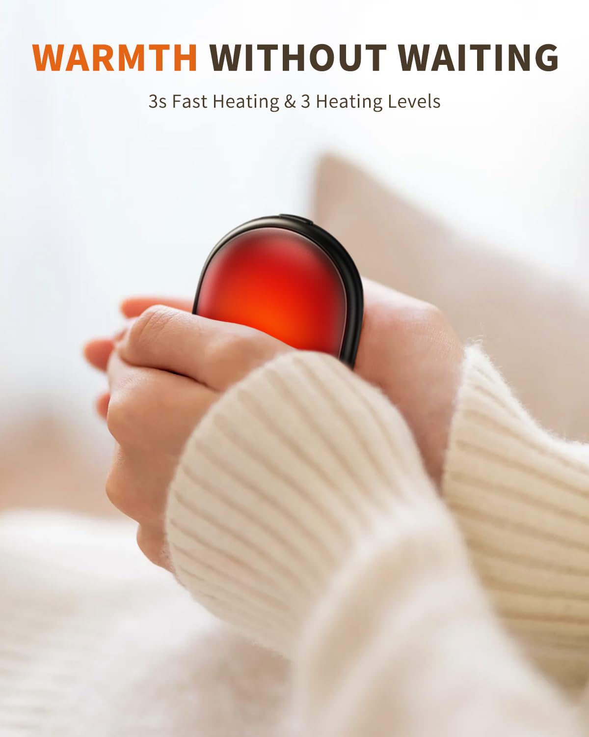 - 3s Fast Heating & 3 Heating Levels: The camping hand warmers has 3 heating modes to meet all your needs: 104°F/122°F/140°F, you can easily click to switch the mode and enjoy the warmth. The hand warmers heat up rapidly, reaching the desired temperature within seconds, ensuring immediate relief from the cold