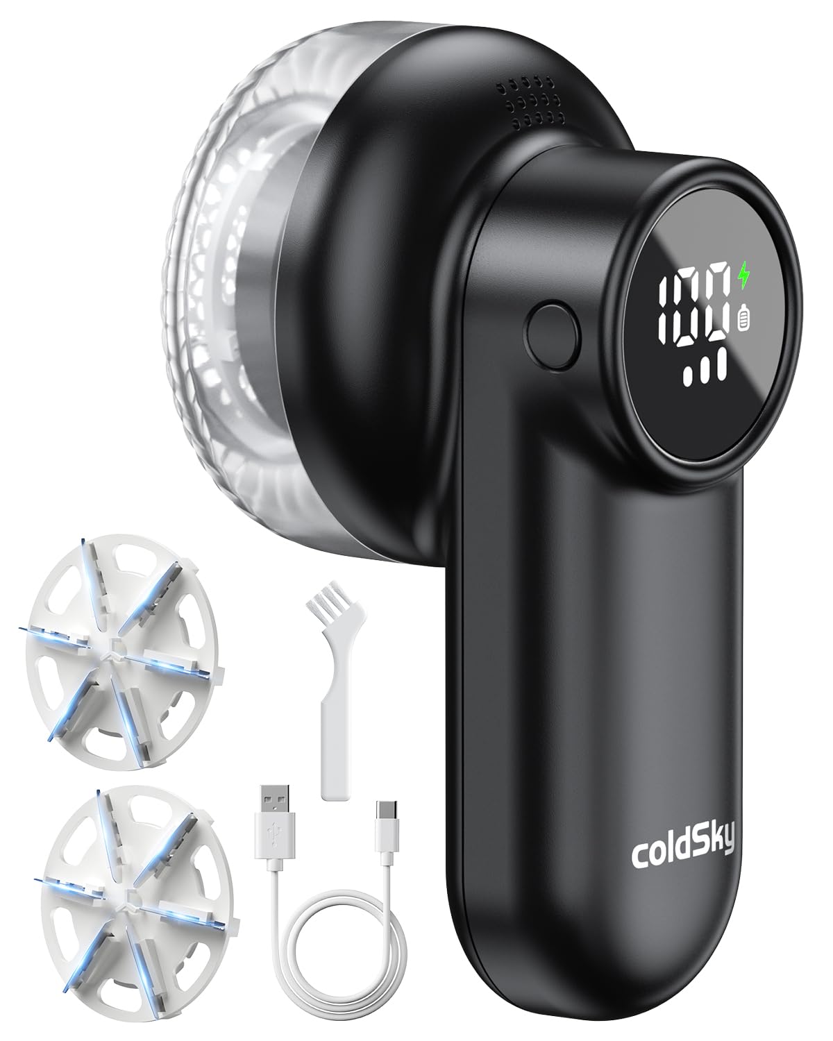 coldSky Rechargeable Fabric Shaver, Lint Shaver with Digital Display, Sweater Shaver with 6-Leaf Blades and Safety Lock, 3-Speeds Defuzzer Remove Fuzz, Pills from Clothes, Furniture, Sofa, Blanket