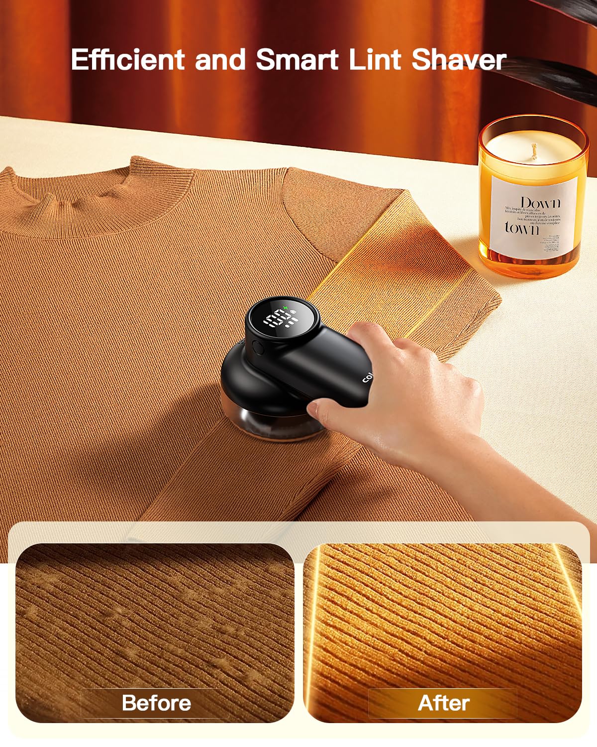 - š„š²š°šµš®šæš“š²š®šÆš¹š² & ššš šš¶š“š¶šš®š¹ šš¶šš½š¹š®š: The high-definition screen of the lint remover will display the remaining battery power, speed levels, and charging status. Lint remover features a built-in rechargeable battery that can be quickly charged in just 1 hour, eliminating the need for frequent battery replacements and saving you money on battery purchases.