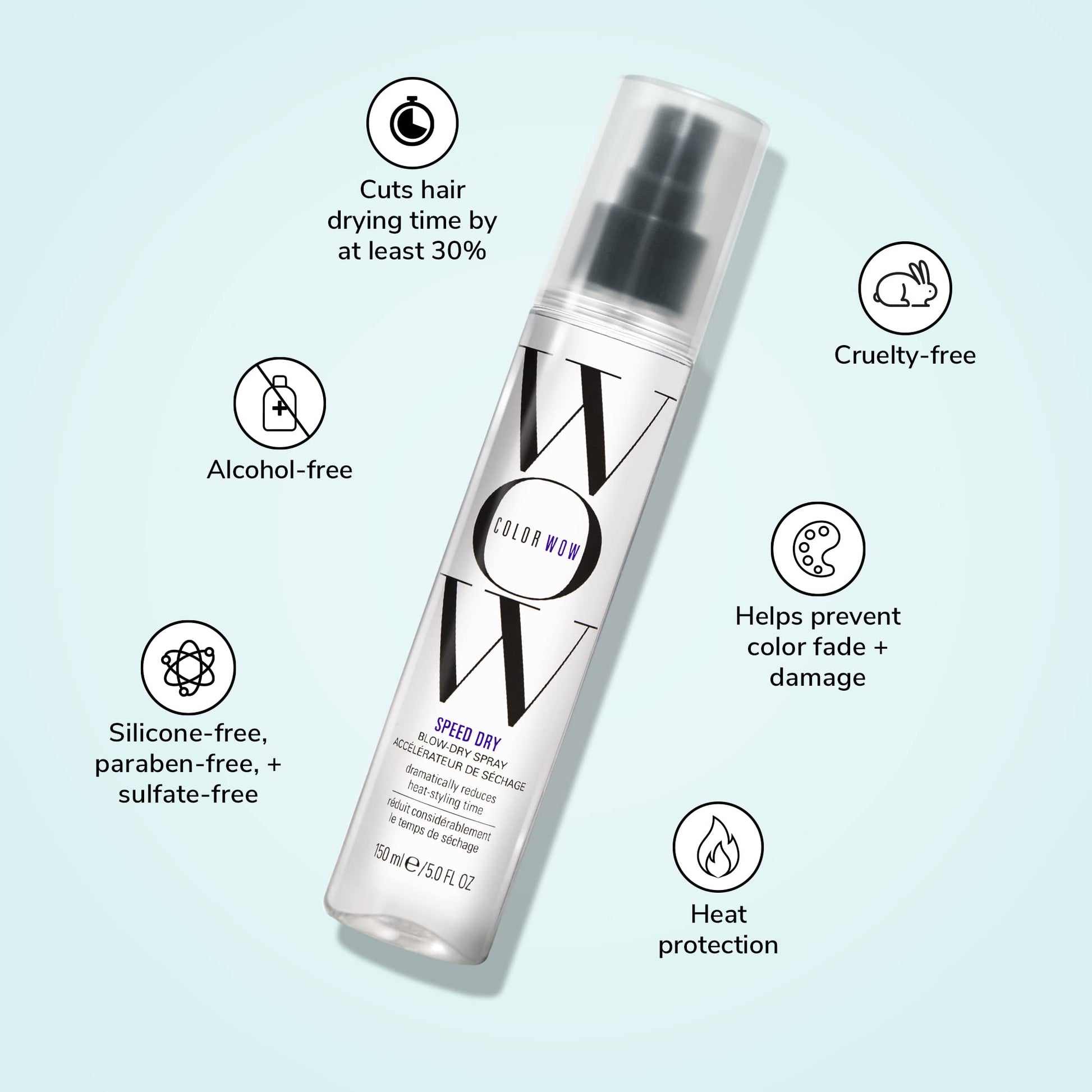 COLOR WOW Speed Dry Blow Dry Spray – Cut Blow Dry Time by 30% | Heat Protectant, Prevent Breakage | Cruelty-Free & Gluten-Free