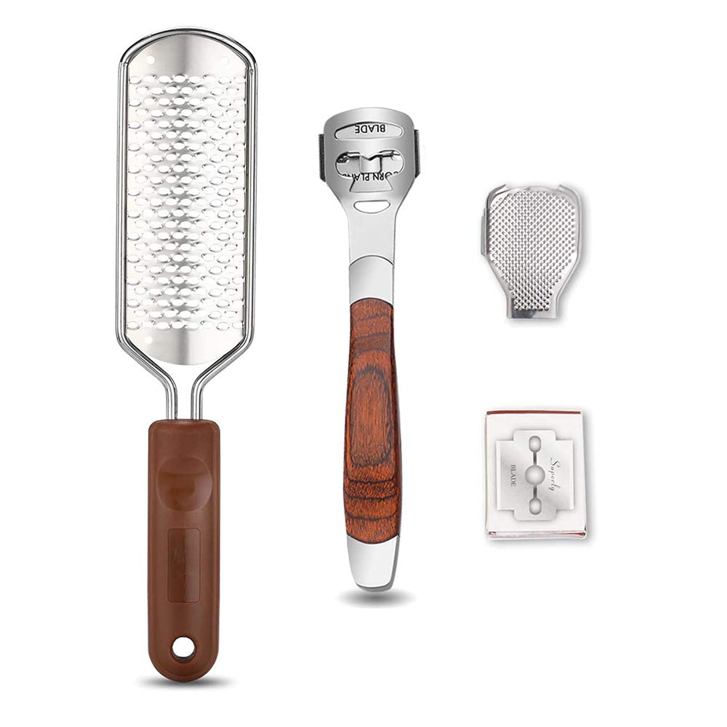 Colossal Foot Rasp & Wood Handle Callus Shaver (10 Replacement & 1 Foot File Heads), Pedicure Foot File Kit, Heel Scraper for Feet, Foot File Callus Remover