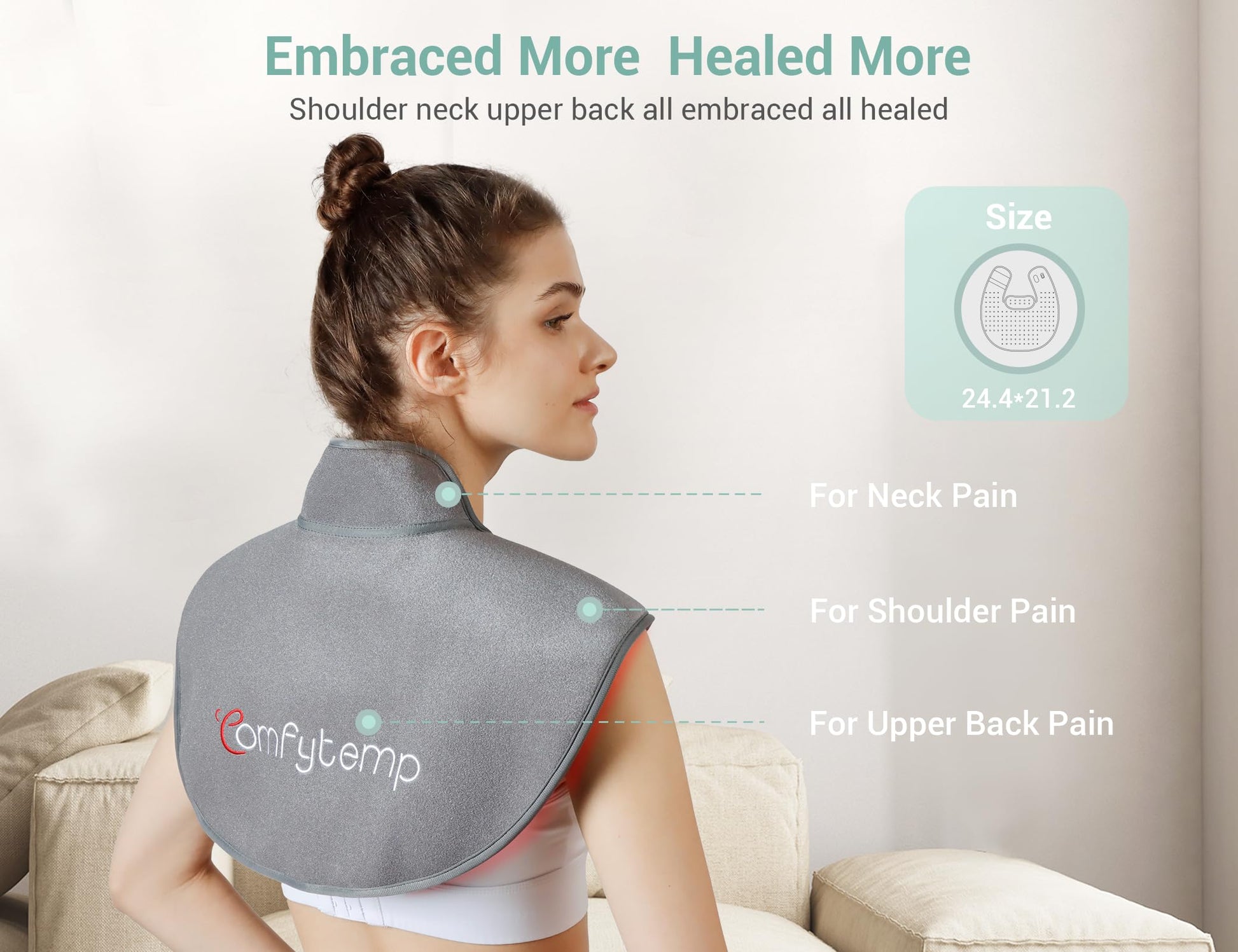 - Target for Neck Shoulder: Comfytemp's vision is to bring red light therapy to your home, offering an effective and convenient alternative to salon visits. Our red light therapy wrap targets neck, shoulder, and upper back pain, featuring 162 lamp beads with visible 660nm red light and invisible 850nm infrared light.