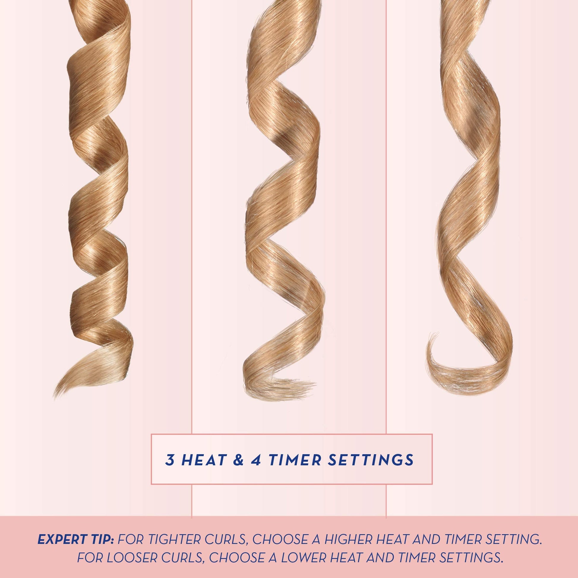 - Sleek Curler: This curler has a LCD digital display showing heat, timer, battery level, & curl direction. 3 Heat/4 Timer settings allow you to create tight to loose curls & waves; Auto Off (will shut off automatically after 15 minutes if left on and idle)