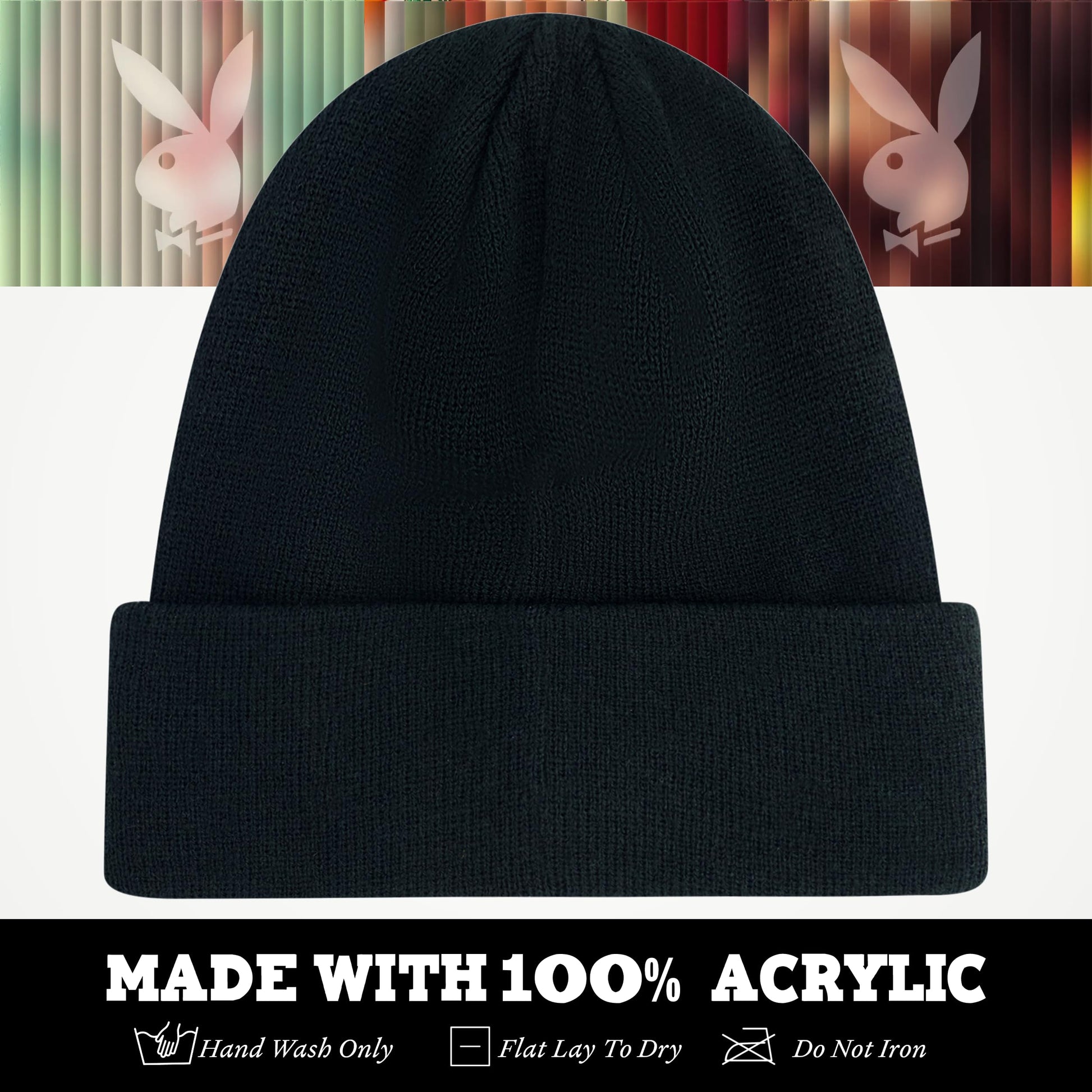 Details: Give the perfect gift to the Playboy fan in your life with the Playboy watch cap. Composed of light weight and durable acrylic fabric, these skullies can be easily stretched to fit men and women's heads of all shapes and sizes to allow for comfort during cold and chilly outside weather. This stocking cap features a stylish Playboy bunny logo on the cuff, and is offically licensed Playboy merch, ensuring you are receiving genuine and authentic clothing accessories. Sock hats are recommended for hand washing only.