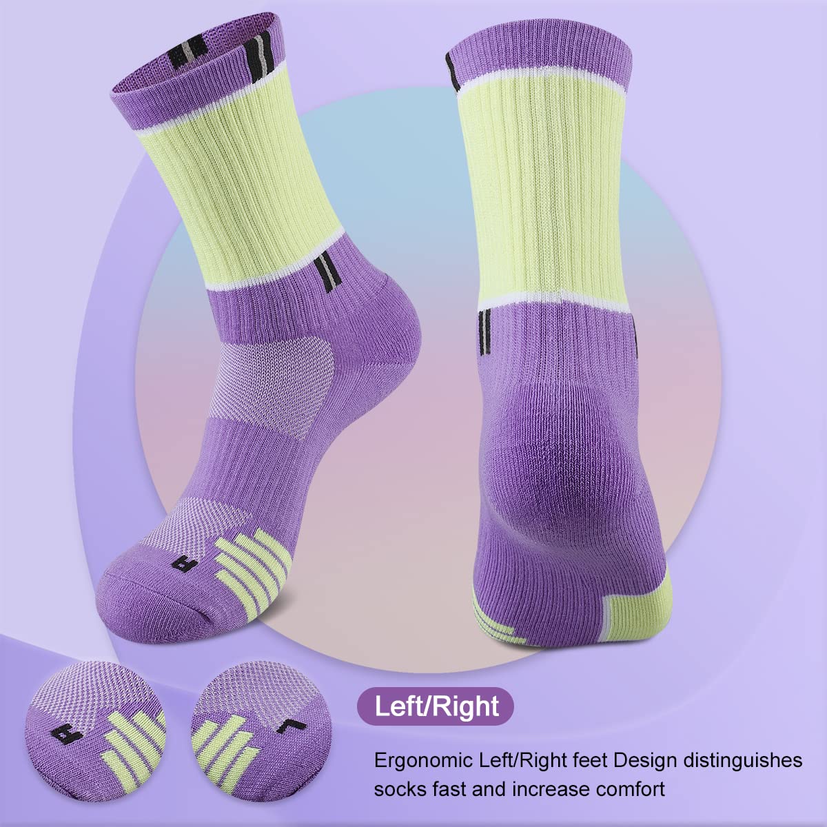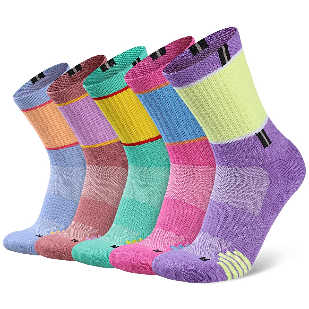 COOPLUS Womens Athletic Crew Socks Performance Cushioned Outdoor Hiking Moisture Wicking Socks (5 Pairs)