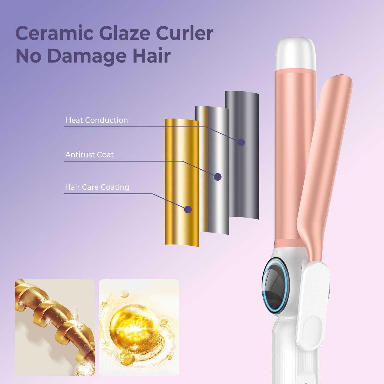 - Ceramic Wireless Hair Curler 20S Fast Heat: USB curling iron is designed with ceramic plate ant PTC heating. The portable curling iron adopts state-of-the-art design and premium materials, tourmaline ceramic coated surface can evenly and quickly heat up and without long-time waiting and protect your hair from unstable temperatures. And our wireless curling wand type-c USB charging, and the package comes with a curling wand storage bag, heat-resistant glove, a comb and one hair clip.