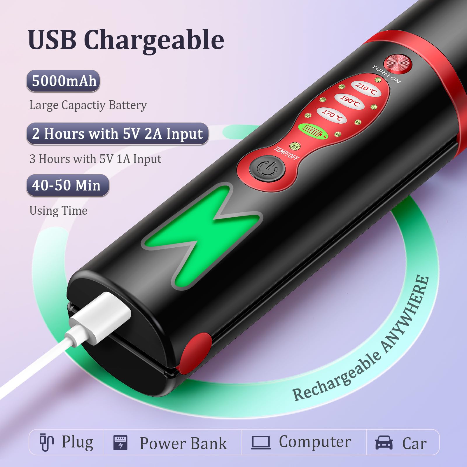 - ✌️【Portable Hair Straightener and Curler 2-in-1】The design of the Cordless battery hair straighteners combines the convenience of cordless operation with versatility, providing straightening and curling functions in one compact unit. It allows you to style your hair anytime, perfect for travelling, working out or touching up on the go.PLEASE NOTE: NOT suitable for THICK hair.