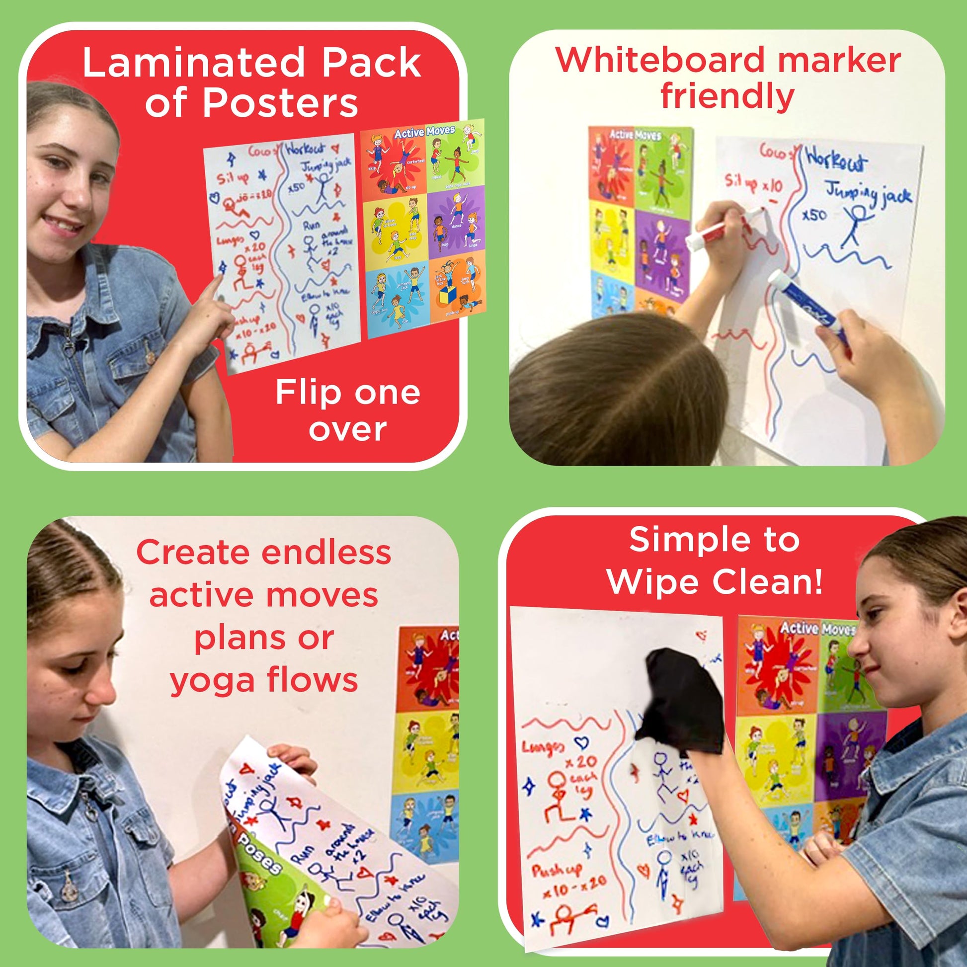 - Dual Learning Tools - Elevate exercise for kids & physical education with this physical education equipment for elementary posters set! Featuring a yoga poster for mindfulness, and an exercise poster for active moves, this set is perfectly tailored for preschool, kindergartens and elementary aged children - classroom or home!