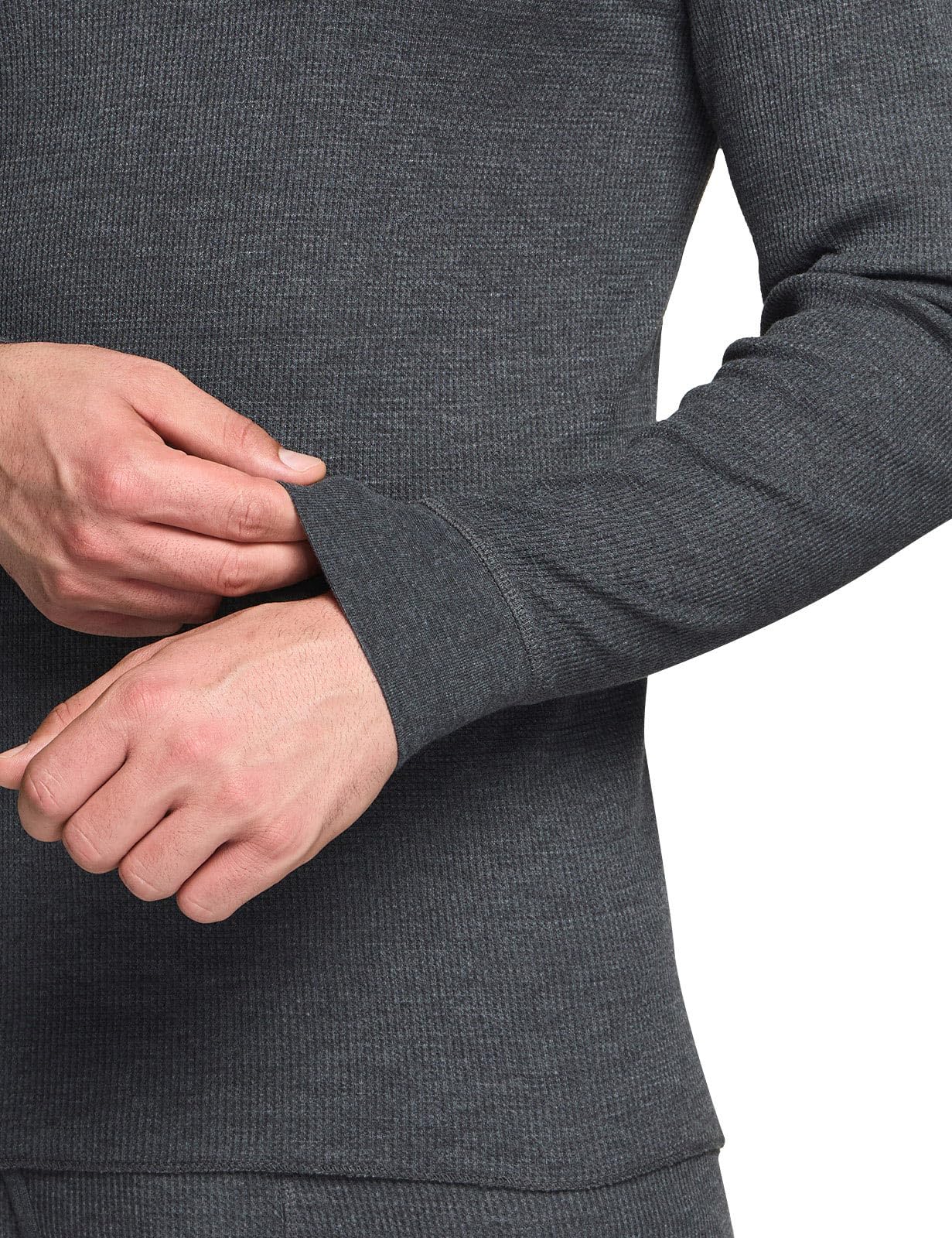 CQR Men's Long Sleeve Thermal Underwear Tops, Midweight Waffle Crewneck Shirt, Winter Cold Weather Thermal Shirts, Mock Neck Top Dark Grey, XX-Large