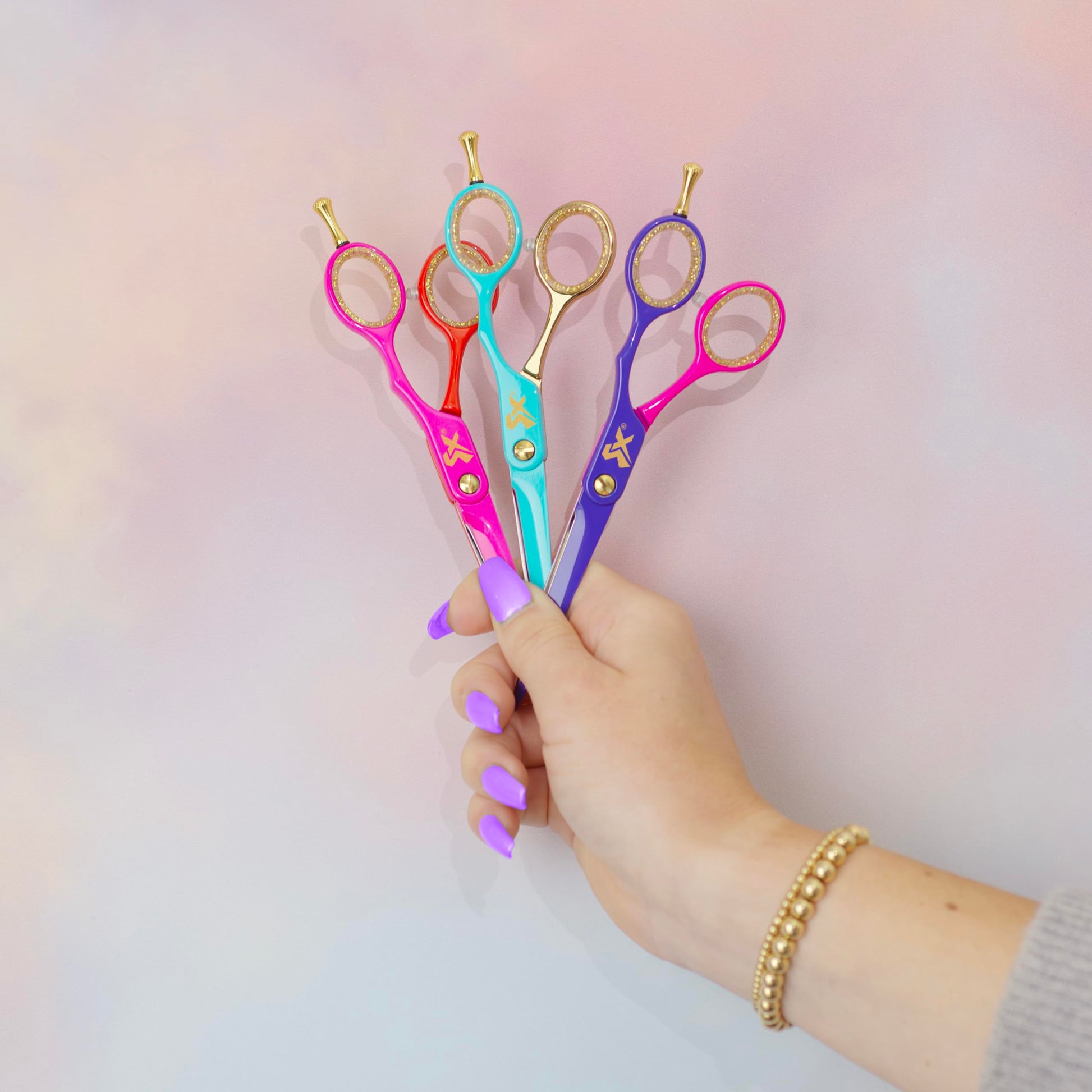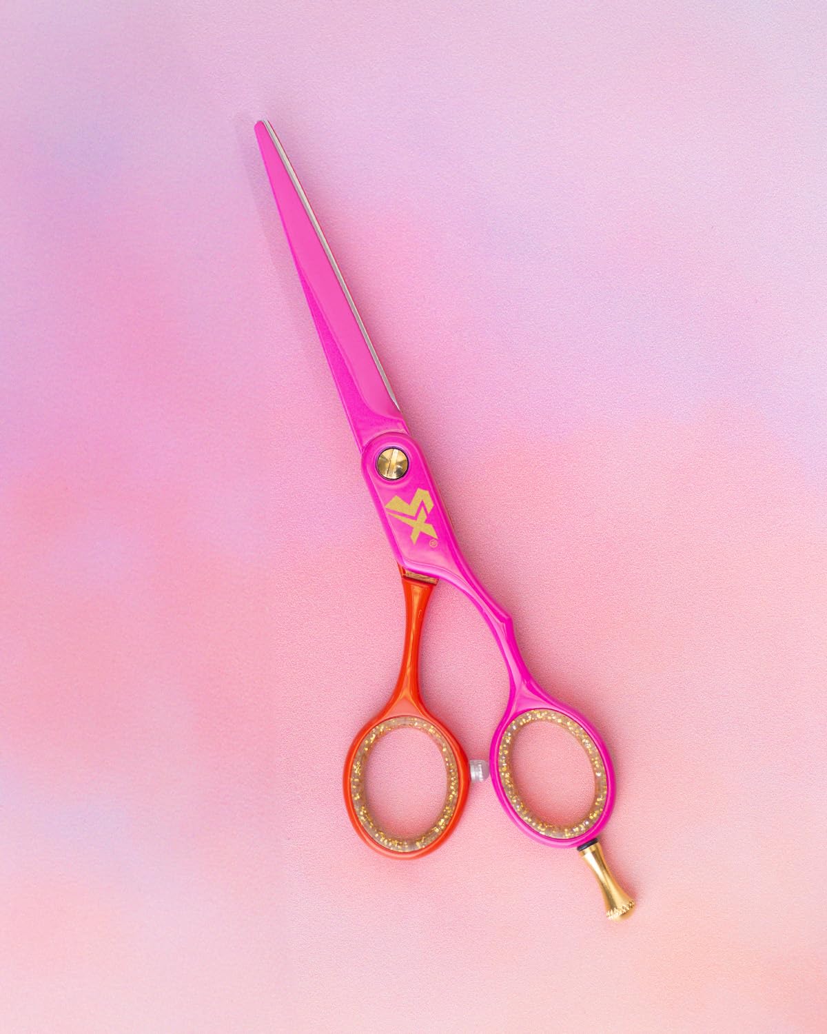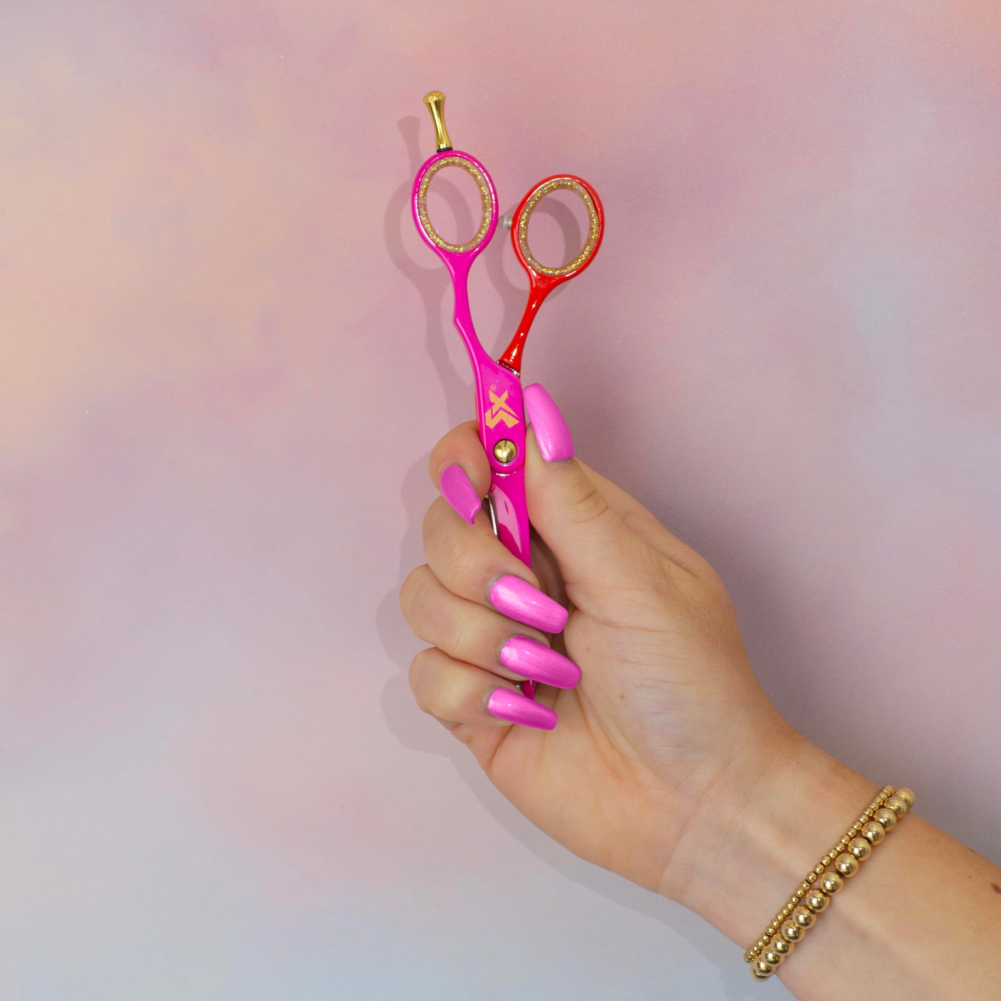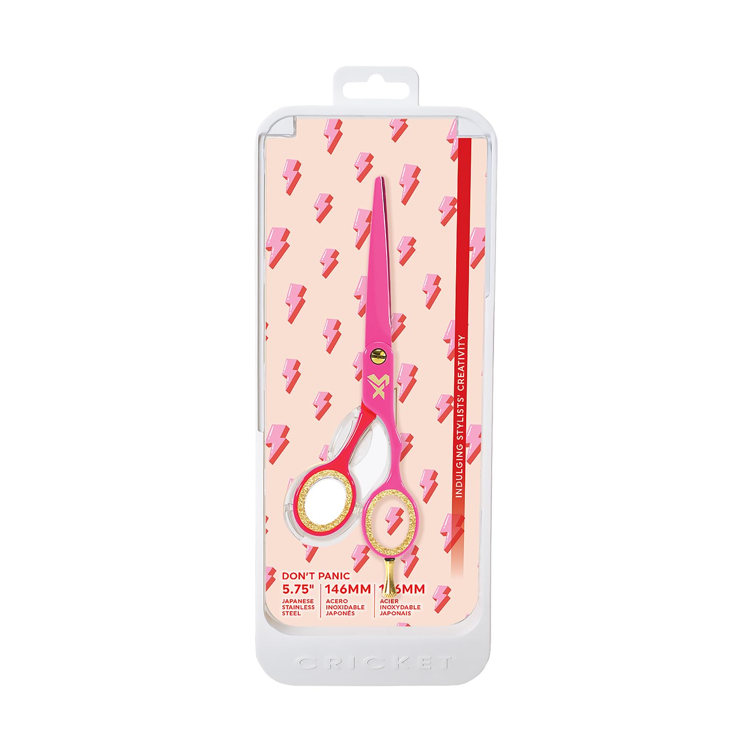 Cricket Shear Xpressions Charmed Life 5.75” Professional Stylist Hair Cutting Scissors, Japanese Stainless Steel Shears, Don’t Panic (Hot Pink & Red)
