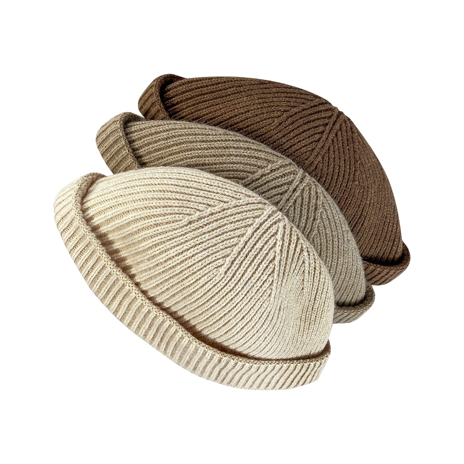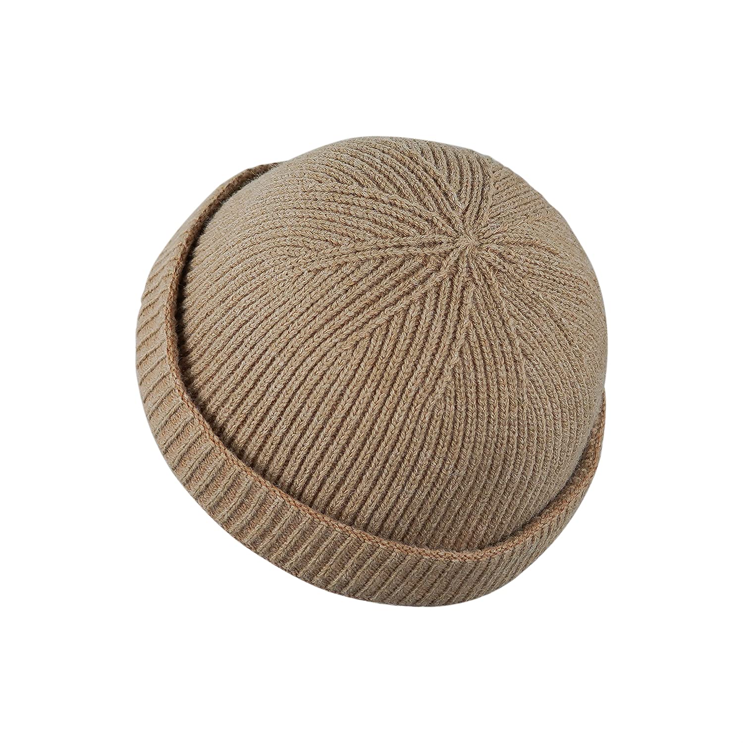 Croogo Docker Hats Round Beanie Hat Casual Lovers Visor-Less Sailor Skullcap Fashion Men's Landlord Hat Winter Hat,Khaki-CT47