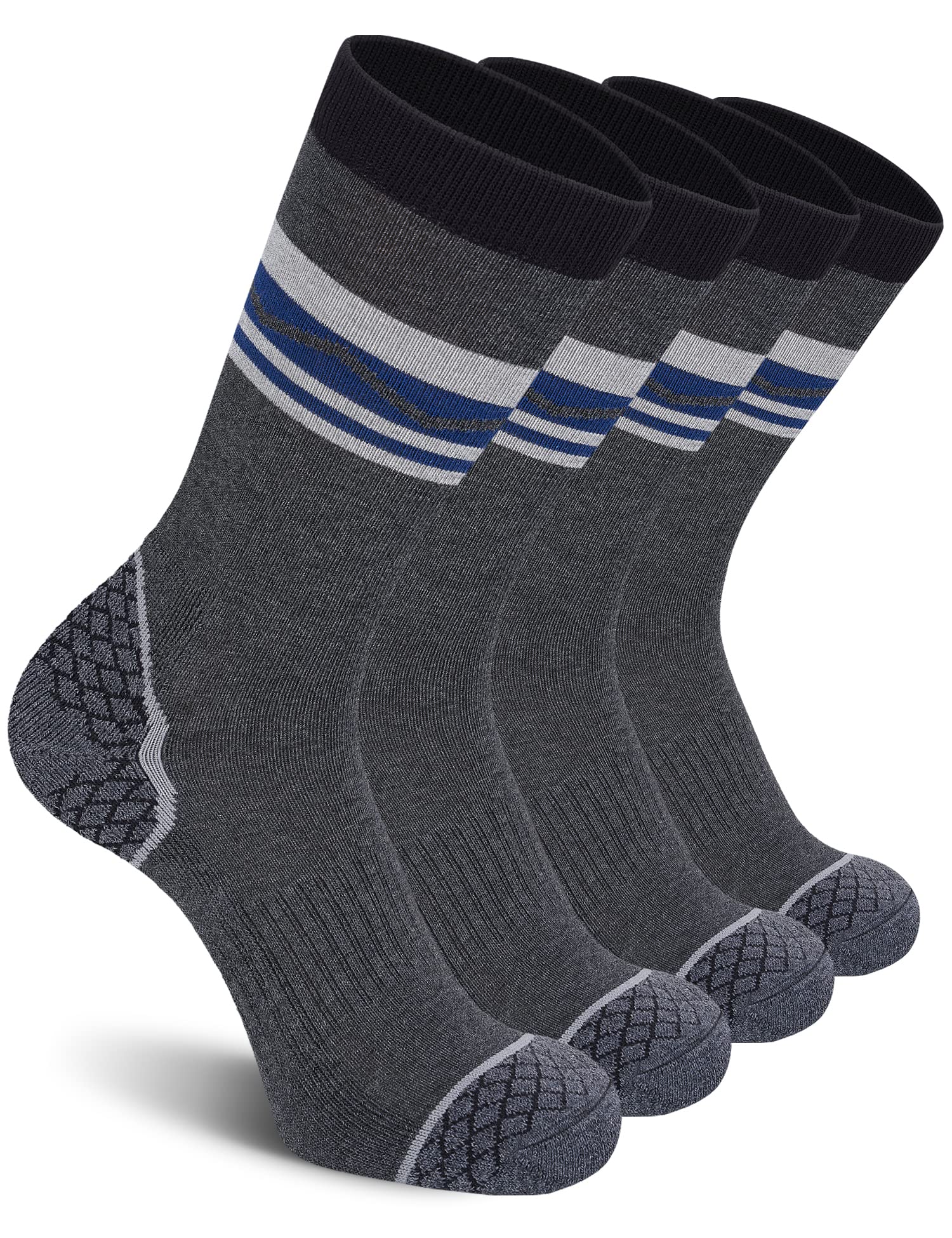 CS CELERSPORT 4 Pack Men's Merino Wool Hiking Socks with Cushion Warm Winter Thermal Boot Crew Socks, Dark Grey, X-Large
