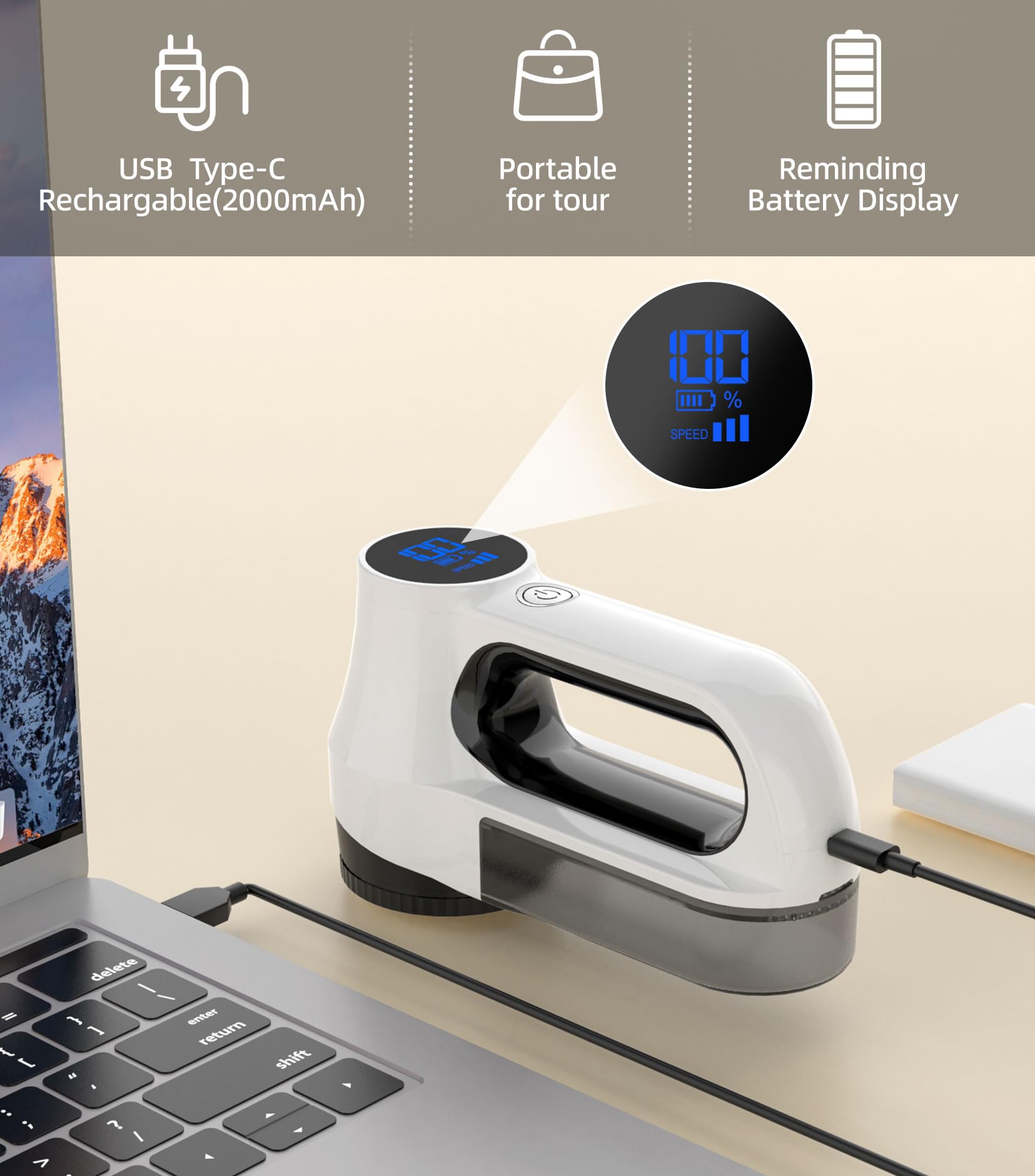 - High-Capacity Rechargeable Battery: The fabric pilling remover features a built-in 2000mAh battery that supports up to 120~240 minutes of wireless lint removal. It comes with a USB Type-C charging cable that is compact and portable, suitable for travel. No more wasting money on battery replacements