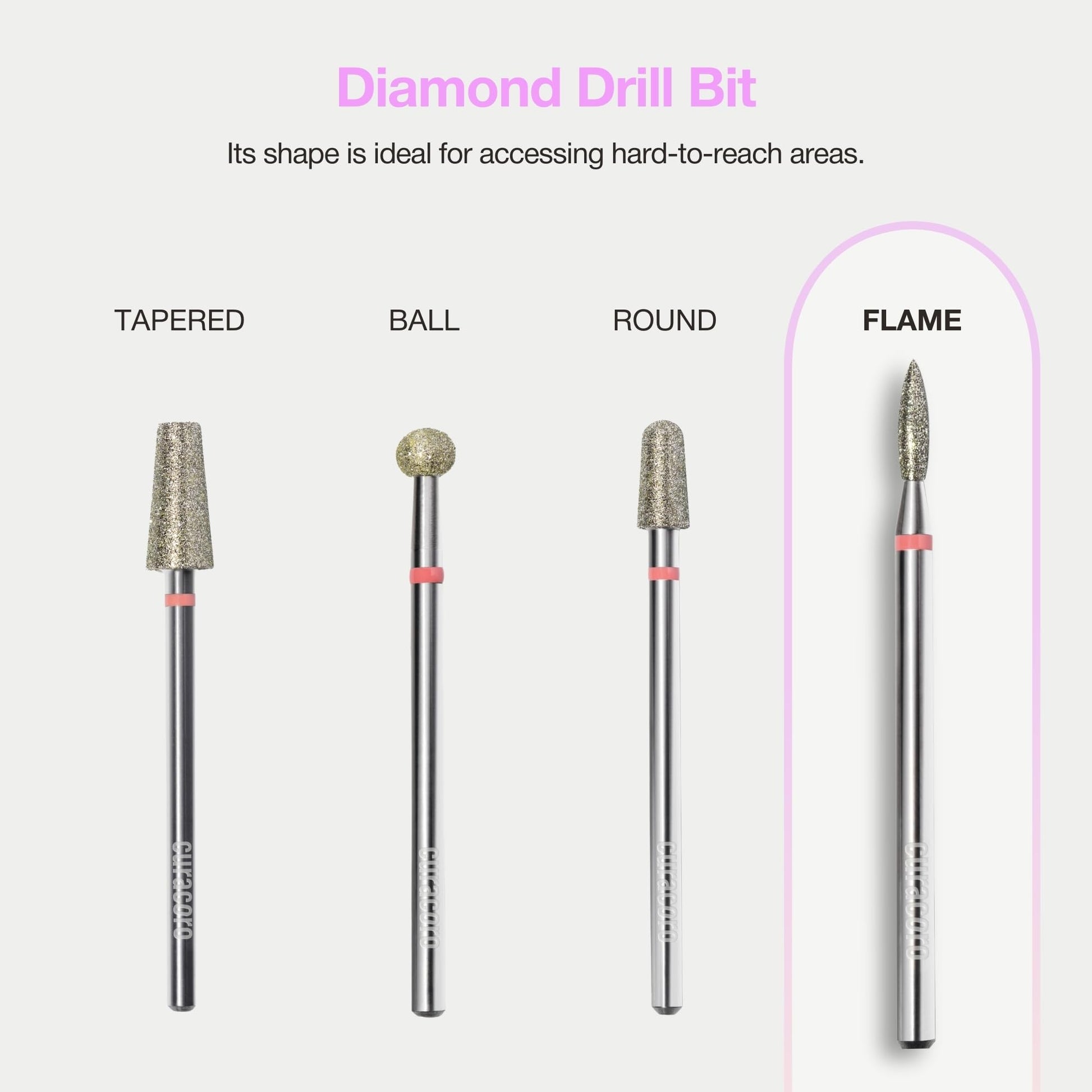 - FLAME SHAPE FOR PRECISION: The flame-shaped bit is perfect for precise cuticle removal and detailed shaping, providing enhanced control in hard-to-reach areas for professional-level results.