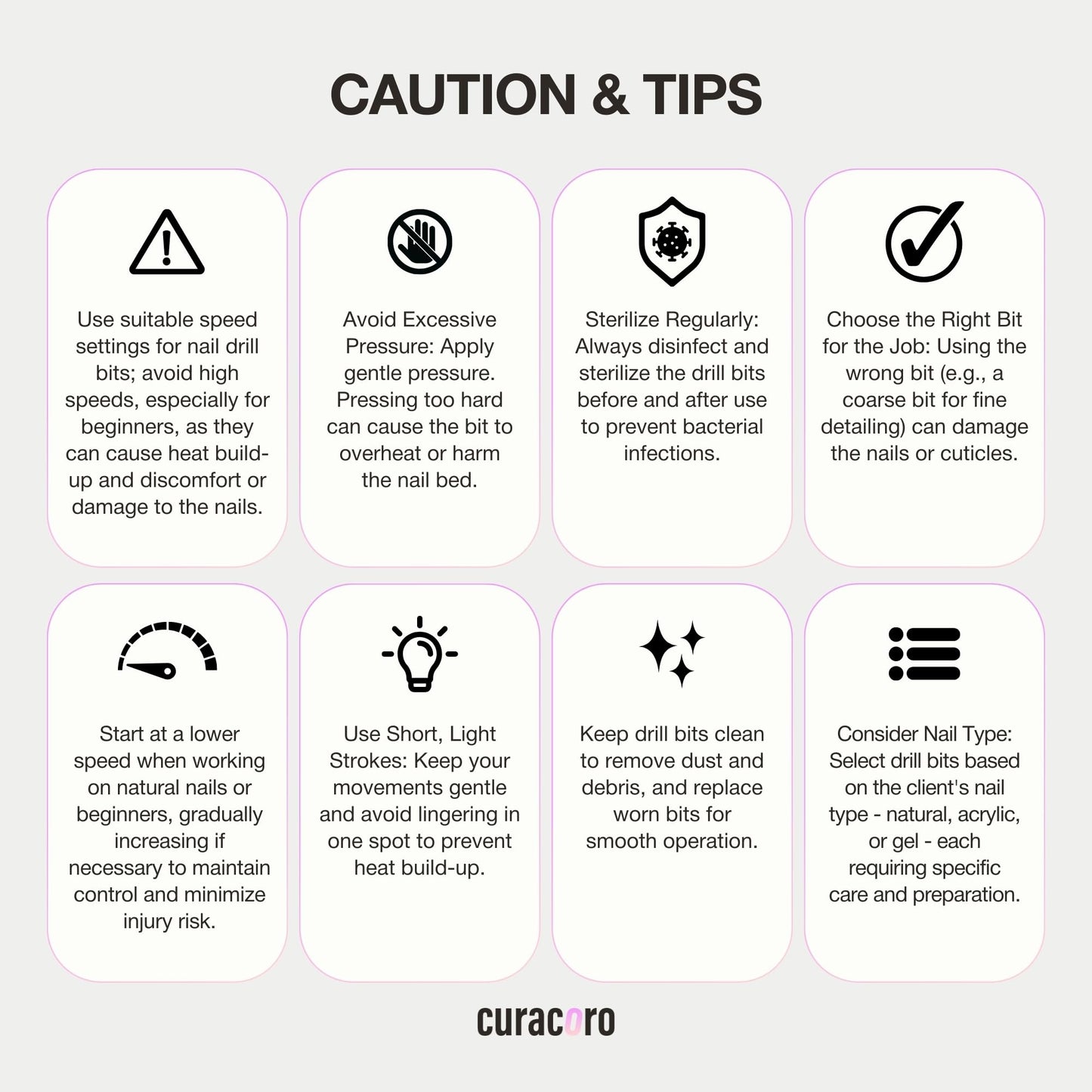 - SALON-GRADE TOOLS: Curacoro is dedicated to redefining nail care with high-quality, salon-grade cuticle nail drill tips. Experience luxury and sophistication with various of shapes, sizes, and grits tailored for every manicure.