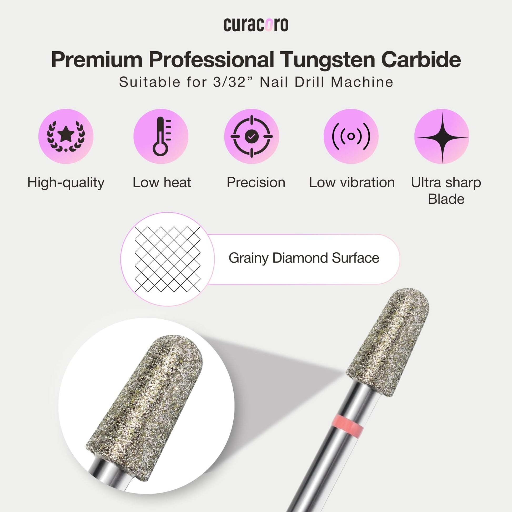 - PREMIUM QUALITY: Curacoro Cuticle Nail Drill Bit is designed to gently yet efficiently remove cuticles and dead skin, leaving your nails looking polished and professionally groomed. Achieve smooth, well-maintained nails without damaging the surrounding skin. Round Shaped | Diamond Drill Bit | Grit: Medium | Shank Size: 4.0mm
