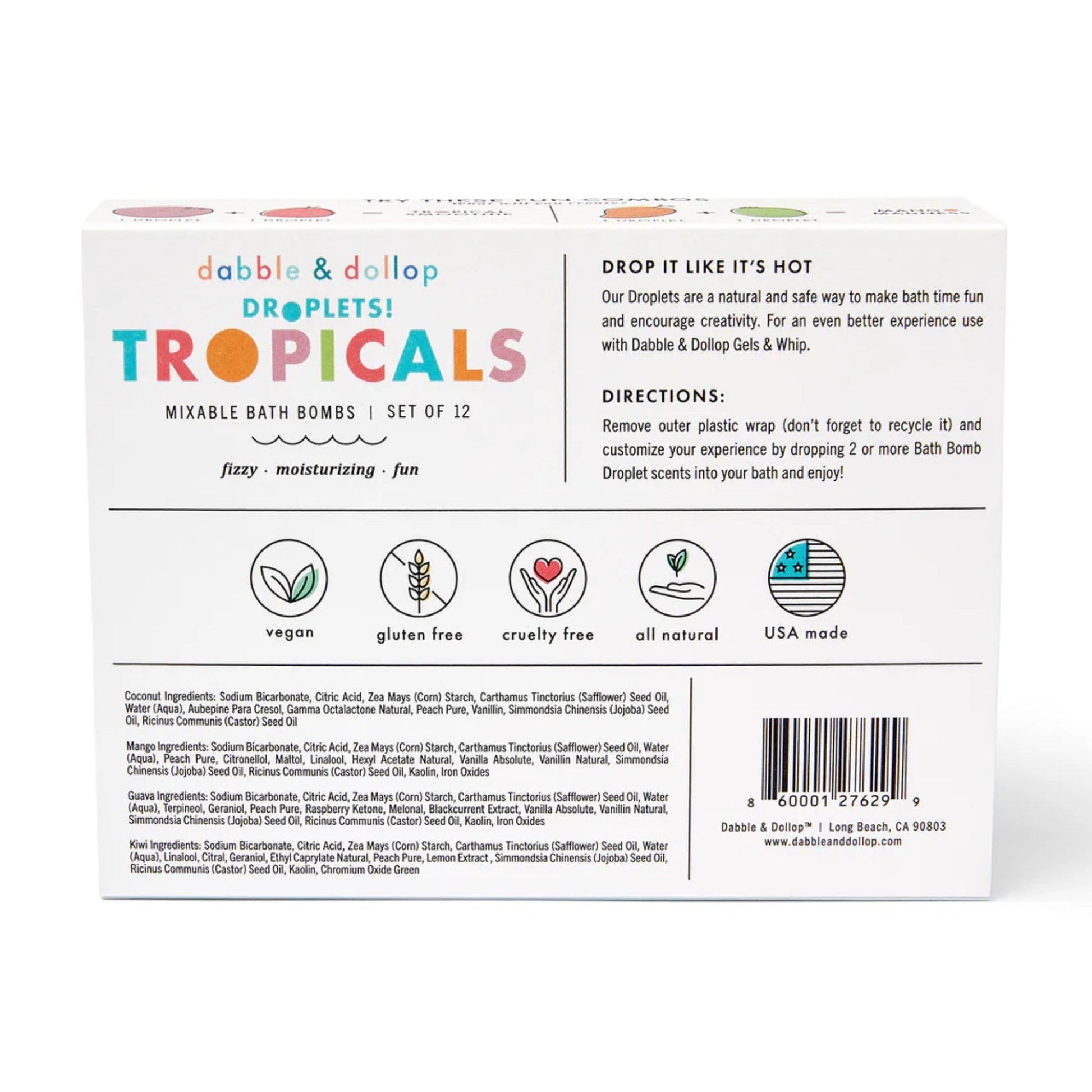 Dabble & Dollop Bath Bombs, 100% Natural Bath Bombs for Kids, Tropical Scents - USA Made, Moisturizing & Fun Droplets, Paraben & Sulfate Free, Vegan, Gluten-Free (Set of 12)