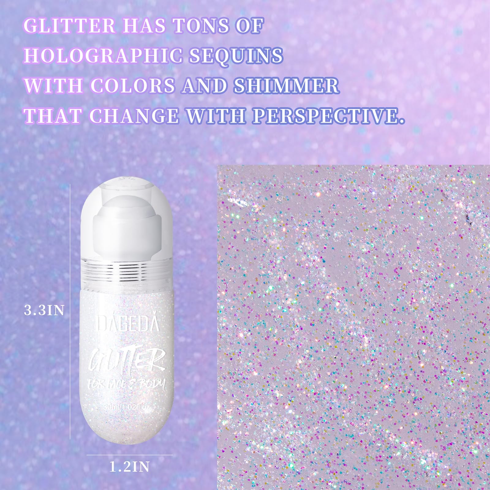 DAGEDA Body Glitter Gel, Roll-on Face Glitter for Mermaid Makeup Festival Rave Accessories, Holographic Hair Glitter Gel,Body Shimmer Halloween Makeup for Rave Party (Dazzle)