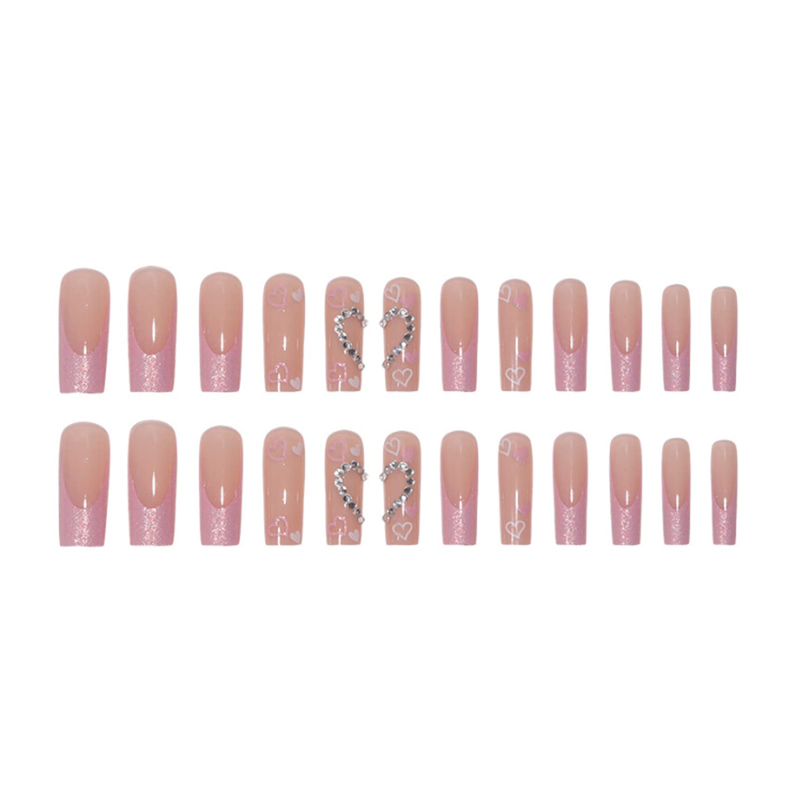 DANMANR Long Press on Nails Square French Fake Nails Full Cover Nude Acrylic False Nails for Women and Girls 24PCS (Pink Luxury)