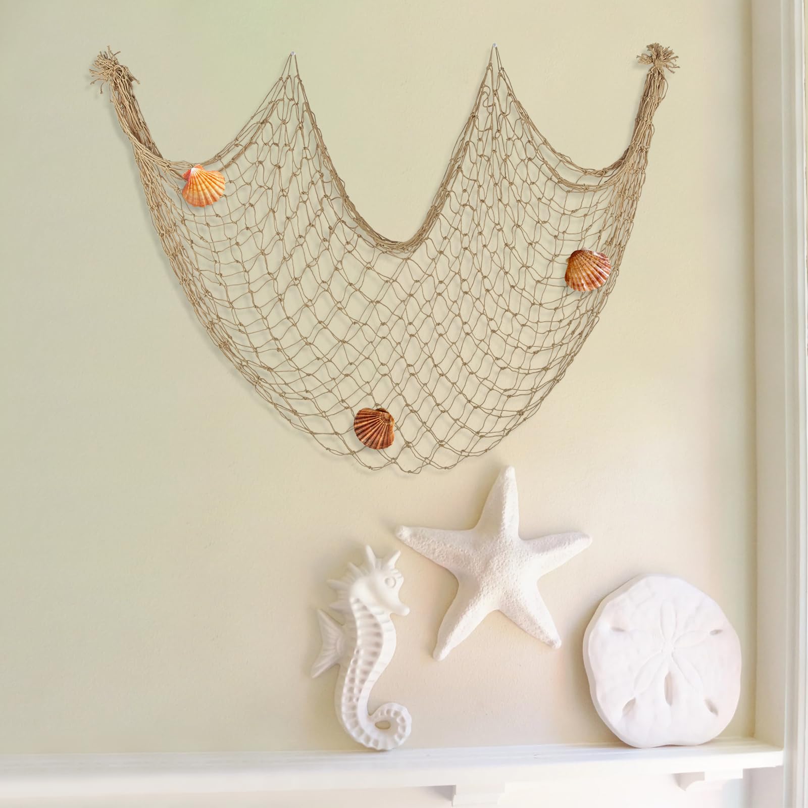 - Fishing decorations for party -This decorative fishnet is the perfect addition to any beach themed setting, whether indoors or outdoors, party decoration or home decoration, handmade fishnet decorations, durable and delicate, a perfect gift for family or friends on the beach lovers.