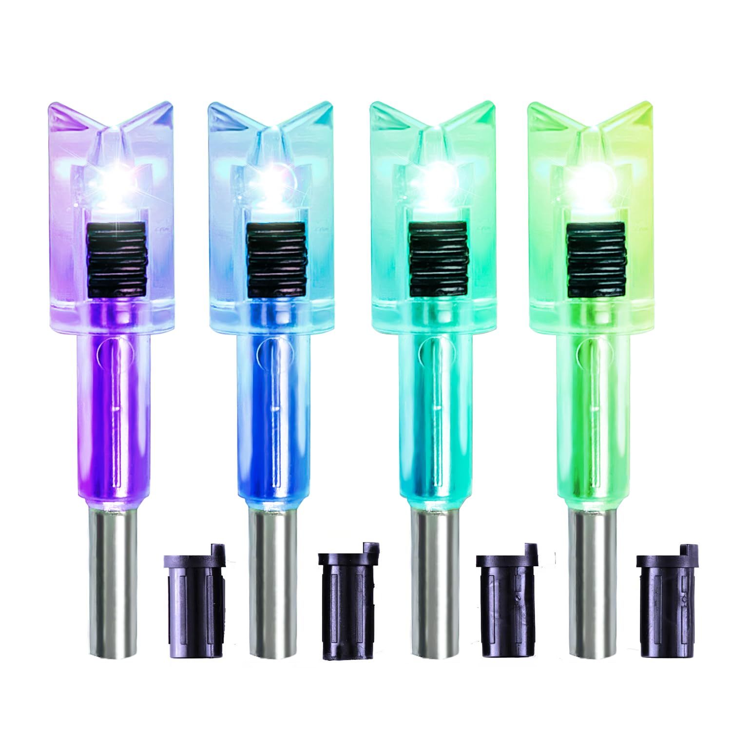 DEEPOWER Crossbow Lighted Nock with ON/Off Switch 4 Pack with .285”/.297”/.300”/.305” Bushings LED Nock Universal Fit for Bolts (Strobe)