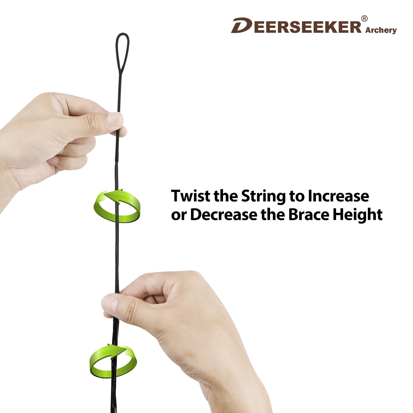 Details: ORIGINAL MATERIAL---- Deerseeker bowstring is made of Dacron B-55 materials that are produced in the USA, it's comprised of 3 parts(String Loop+Under Loop Sering place+Centre Serving Place). If your bow is recurve bow, then Bigger Loop is for Upper Limb, and Smaller Loop is for Lower Limb. FEATURE---Dacron B--55 is good at Absorbing the VIBRATION which caused by archery shooting. Moreover, Dacron B-55 bowstring is helpful to the VELOCITY of the Archery shooting base on its flexibility and stability. Deerseeker bow string including most of the sizes for your selection, from 48'\50'\52'....70', and 12 strands string is mostly for beginner bows, and 14\16 strands are mostly for hunting bows or high draw weights bows. PRECISION--- The thickness of the Centre serving place is the place where the Nock is put, we inspect the THICKNESS by Dial Gauge. To make sure, they're doable for NOCK. Guarantee and Maintenance----Before shooting, inspect the bowstring please, Deerseeker Archery provide quick Guarantee for our clients. Using good quality String Wax to protect your string please. After assembling the bowstring, if the brace height could be adjusted by twisting the bowstring.