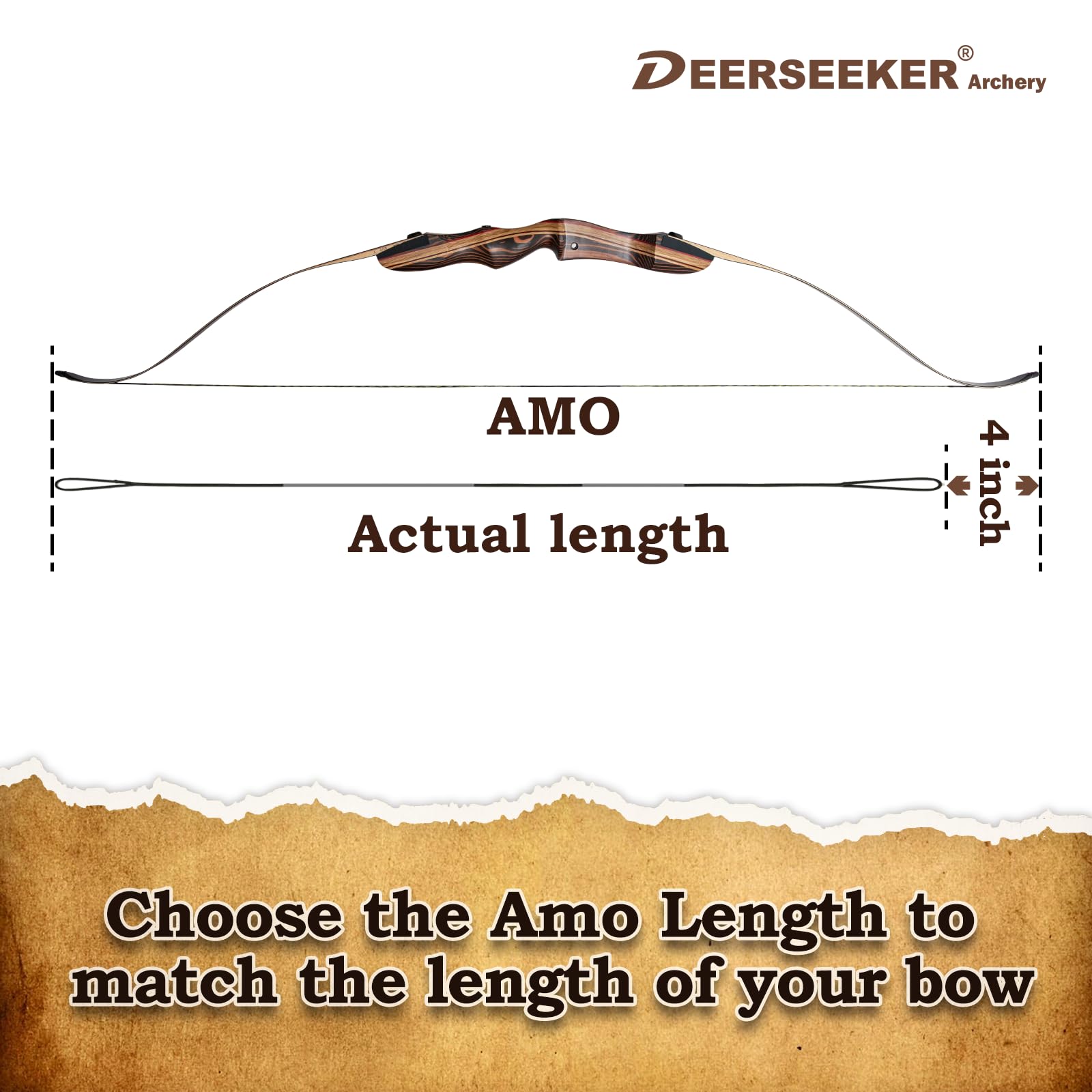 - 🏹【Features】-- AMO length is the standard of archery manufacturing organization and it's the length of your bow. For the longbow, the real length is 3' shorter than the given AMO length, and for the recurve bow, it's 4' shorter. If the draw weights of your bow are over 40 pounds, we recommend 14 and 16 strands, and 12 strands bowstring is for beginner bows or light draw weight bows.