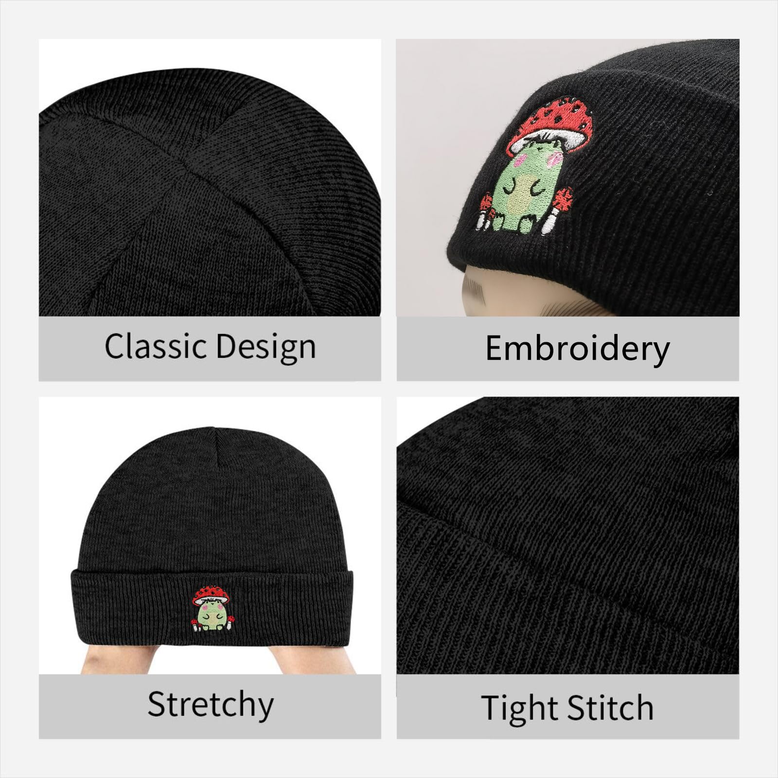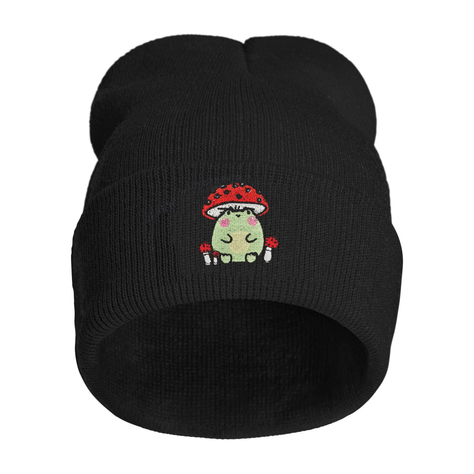 DEKIFNHG Funny Frog Mushroom Embroidered Beanies Hat, Winter Warm Knit Hat for Men and Women Gift