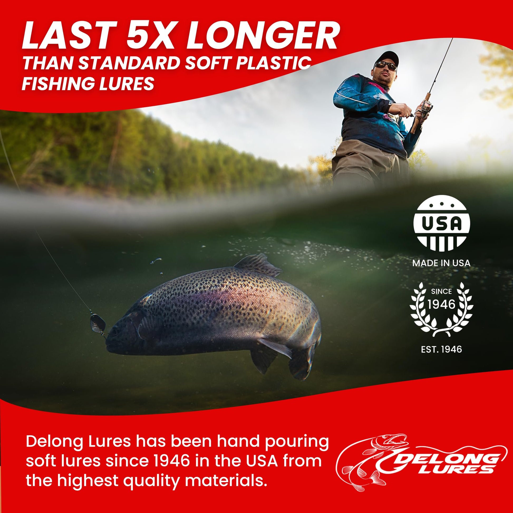 - ULTRA DURABLE MADE IN AMERICA : DeLong Lures is proud to be the company that invented the soft plastic fishing lure in 1946 in Akron Ohio. We stay true to our original commitment to provide the best high quality made in America fishing lures on the market! You can trust in their durability and performance, making them a valuable addition to your fishing lure set.