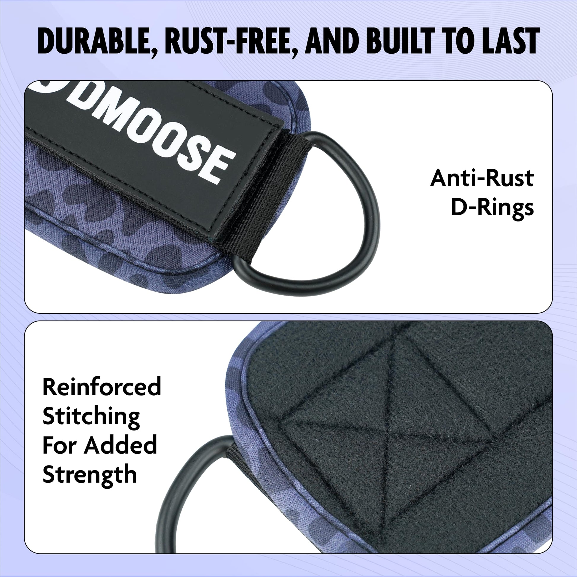 - ššššššš šššššššššššš: Built to last, the DMoose Ankle Ankle Bands for Working Out featured durable nylon material and reinforced stitching that withstands the rigors of heavy use. The robust design ensures the gym ankle strap for cable machine can handle the most intense workouts without wearing out, making them ideal for athletes, bodybuilders, fitness enthusiasts, and especially women who demand long-lasting performance from their gear.