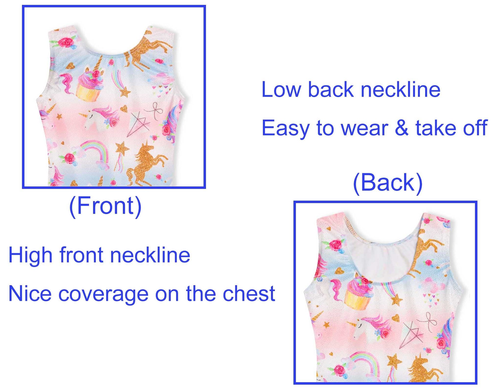 Domusgo Girls Gymnastics Leotards Size 6-7 Years Old Sparkle Rainbow Unicorn One Piece Biketard