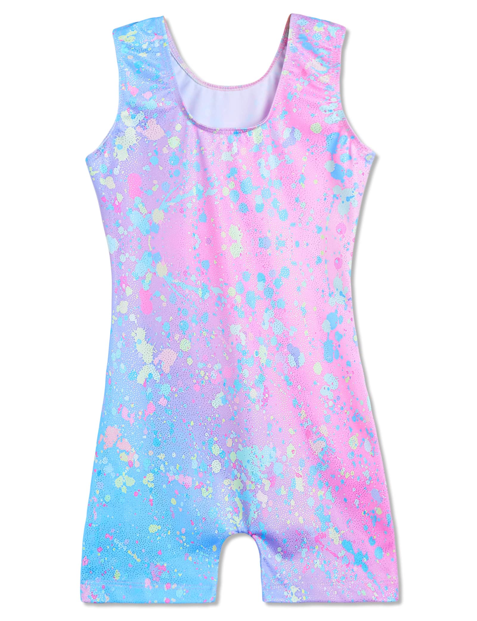 Domusgo Girls Gymnastics Leotards Size 8-9 Years Old Shiny Colorful Graffiti Dot Sleeveless Biketard with Shorts