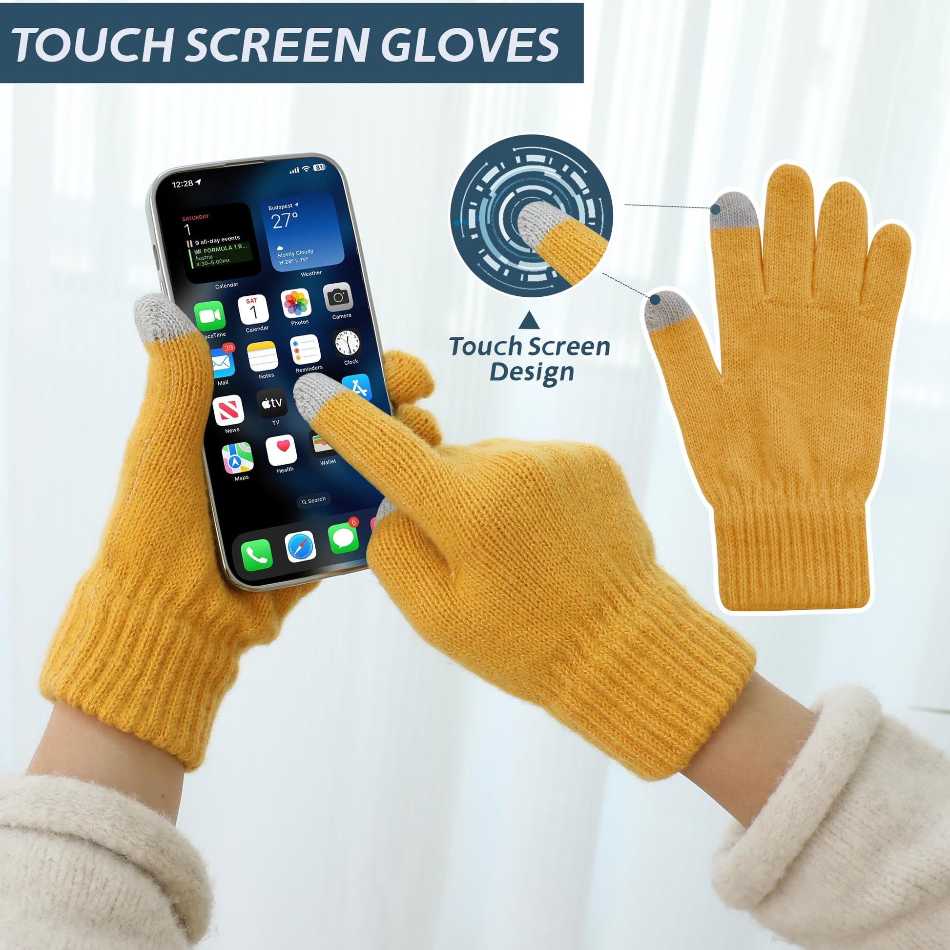 - Package List:3 pcs hat gloves scarf set women includes a loose-fitting beanie for women with with cute artificial fur pompom, cozy touchscreen winter gloves, and a winter scarf for women