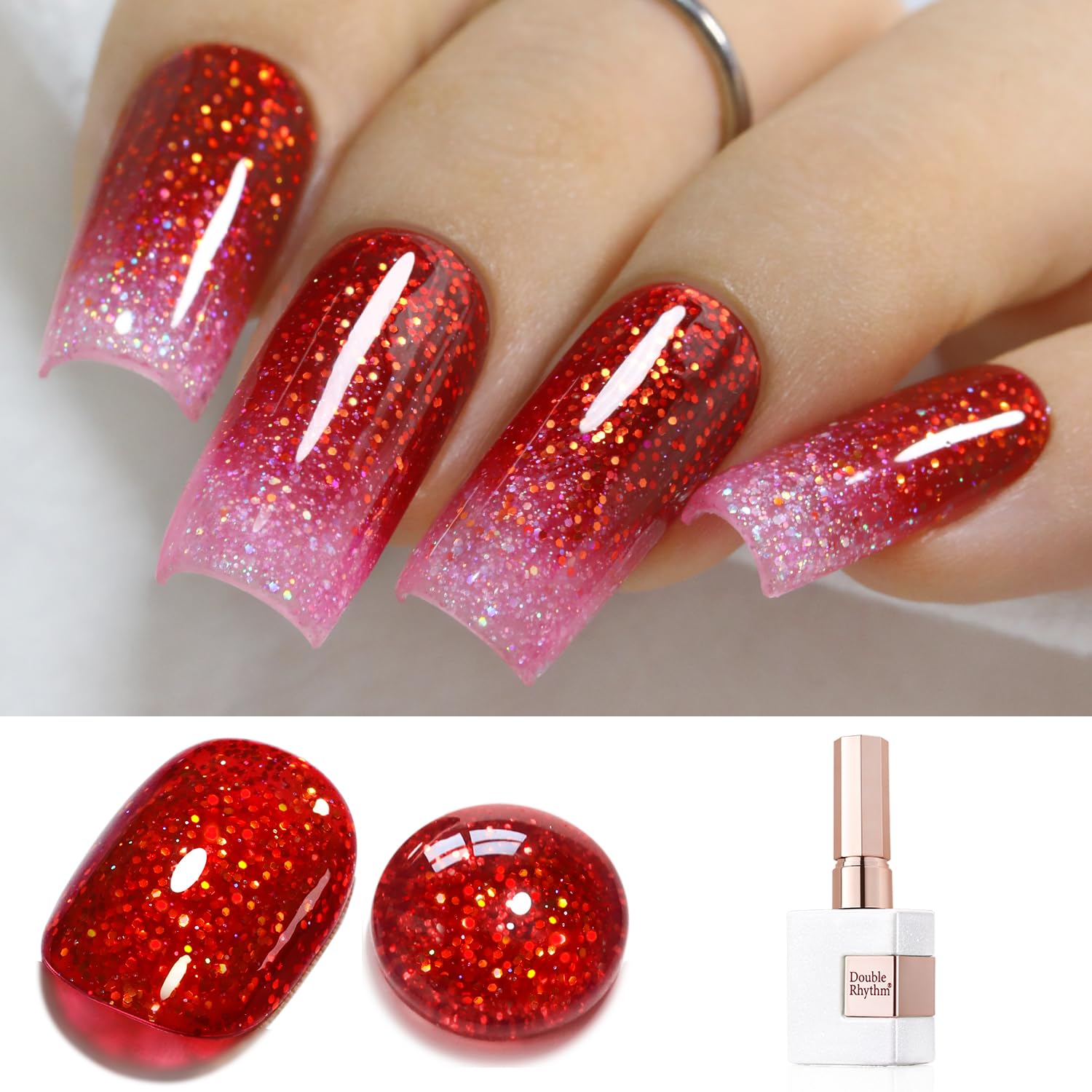 Double Rhythm 15ML Glitter Gel Polish Shimmer Reflective Holographic Color Magnetic for Nail Art Salon DIY at Home (Sparkle Red-B1156)