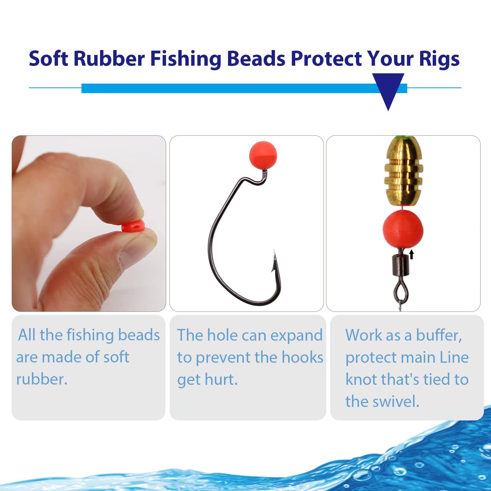 - MADE OF SOFT RUBBER: All the fishing beads are made of high quality soft rubber. They can work as a buffer, preventing the leads from damaging the main Line knot that's tied to the swivel. Great for heavy sinkers.
